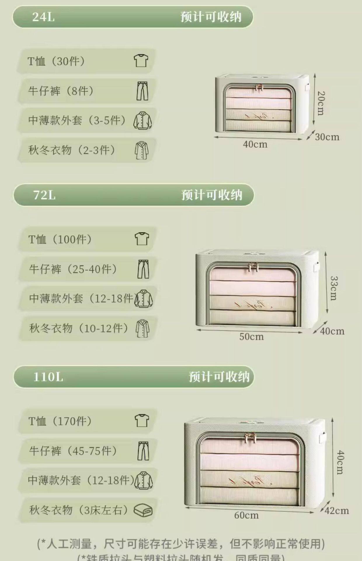 | Size | 24l (length 40*width 30*height 20cm) worsted texture/thick steel frame/standard size,66l (length 50*width 40*height 33cm) worsted texture/thick steel frame/standard size,110l (length 60*width 42*height 40cm) worsted texture/thick steel frame/standard size |
