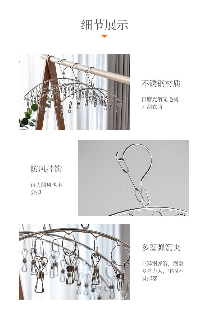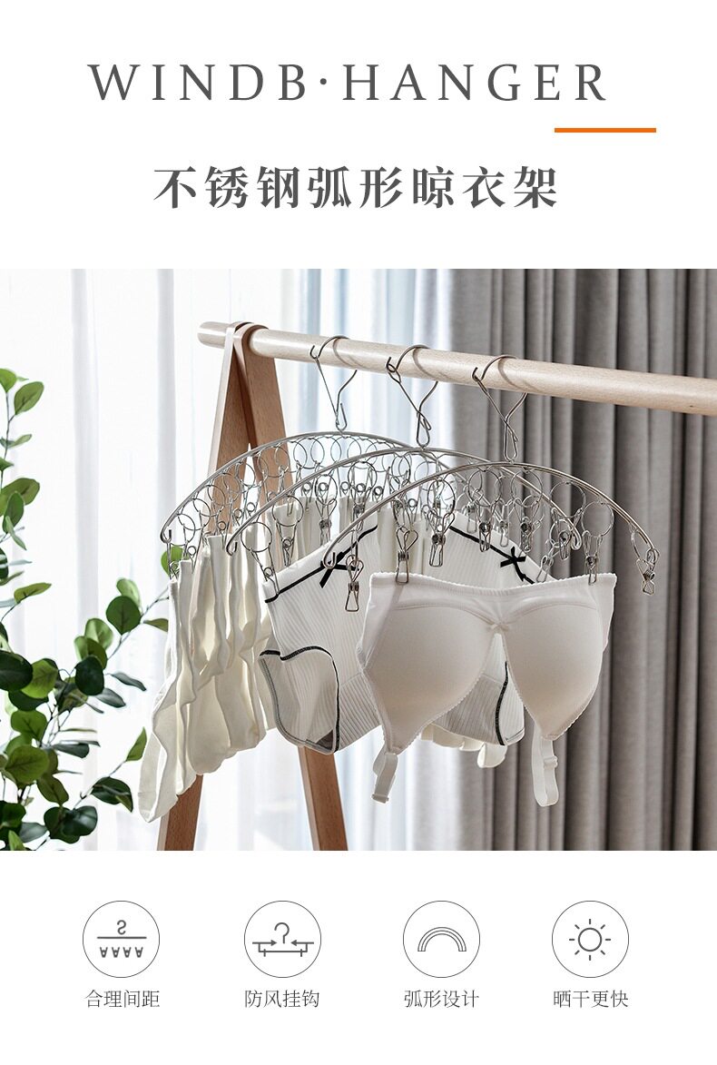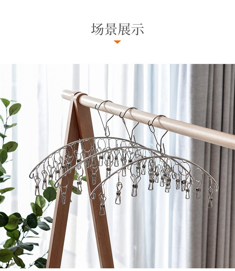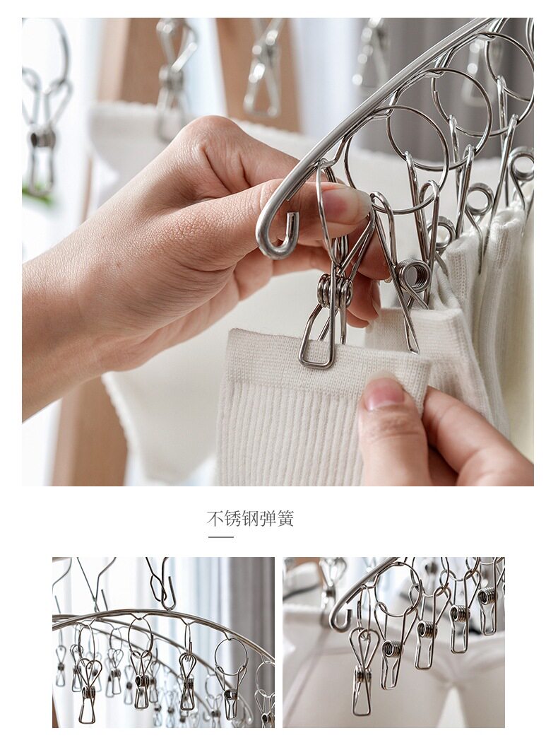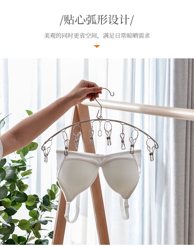 New stainless steel socks artifact 6/8/10 clip curved household baby underwear panties multi-head drying rack
