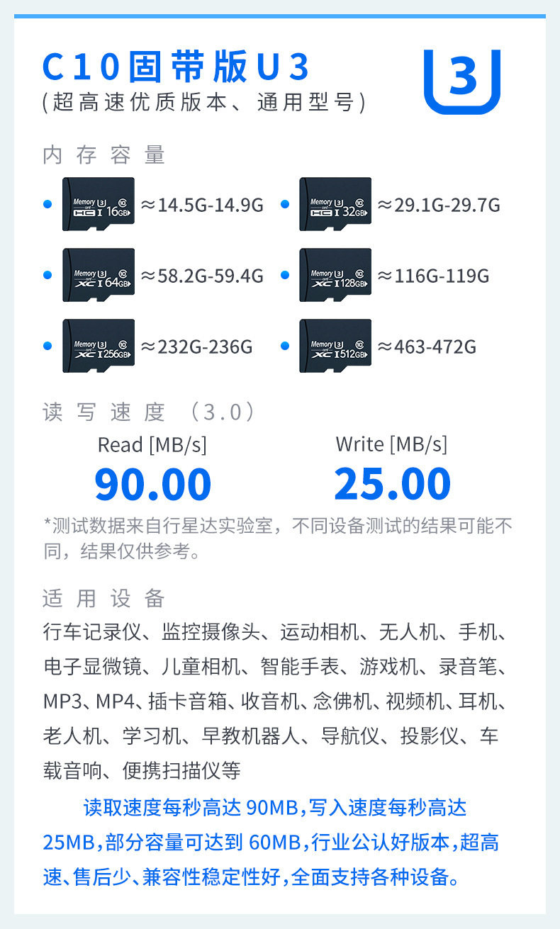 | Capacity | 128mb basic version,256mb basic version,512mb basic version,4gb basic version,8gb basic version,16gb basic version,32gb basic version,64gb basic version,4gb-c10 high speed card,8gb-c10 high speed card,16gb-c10 high speed card,32gb-c10 high speed card,64gb-c10 high speed card,128gb-c10 high speed card,8gb-u3-c10 high quality card,16gb-u3-c10 high quality card,32gb-u3-c10 high quality card,64gb-u3-c10 high quality card,128gb-u3-c10 high quality card,256gb-u3-c10 high quality card,512gb-u3-c10 high quality card |