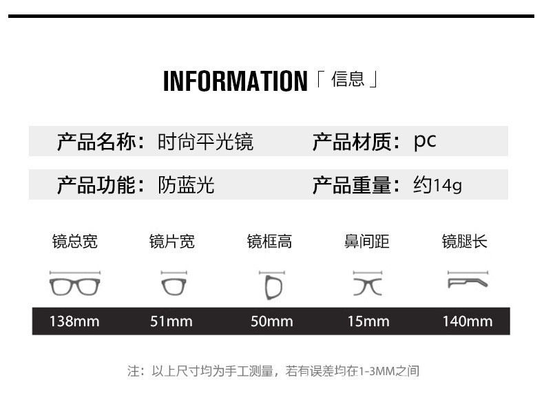 | Frame color | Glossy black frame,Through tea frame,Transparent gray frame,Transparent pink frame,Transparent frame |