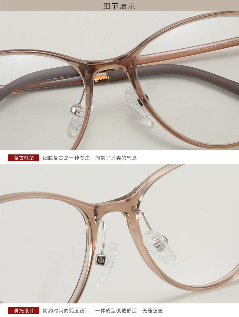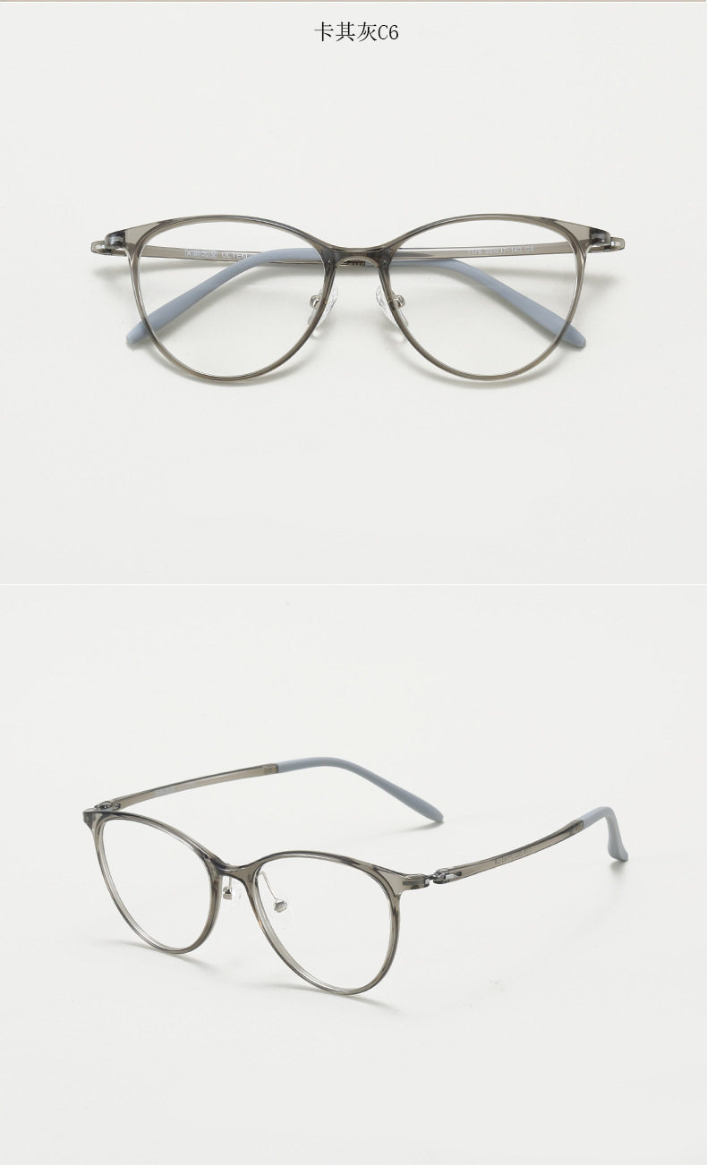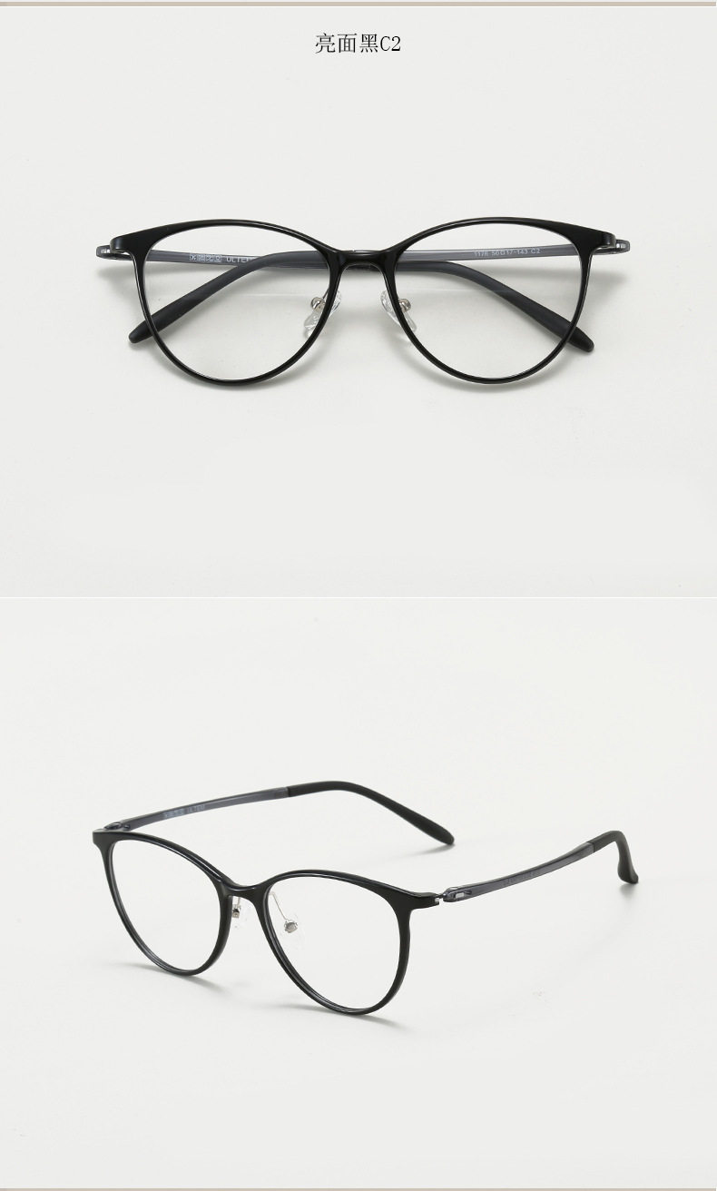 1176 Retro Ultra Light Elastic Cat's Eye Plastic Steel PPSU myopia glasses frame Women's fashionable European and American color changing glasses frame