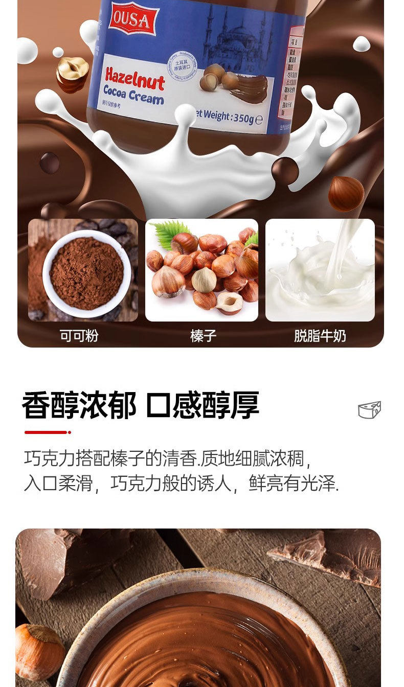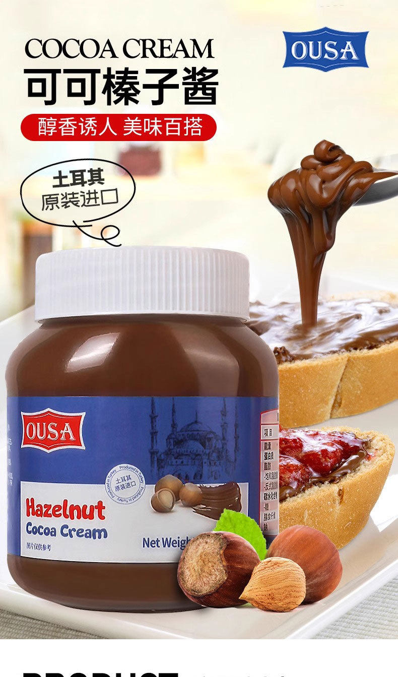 Ousa Original Imported Seasoning Sauce Hazelnut Cocoa Flavor Chocolate Spread Bread Biscuits 350G/Can