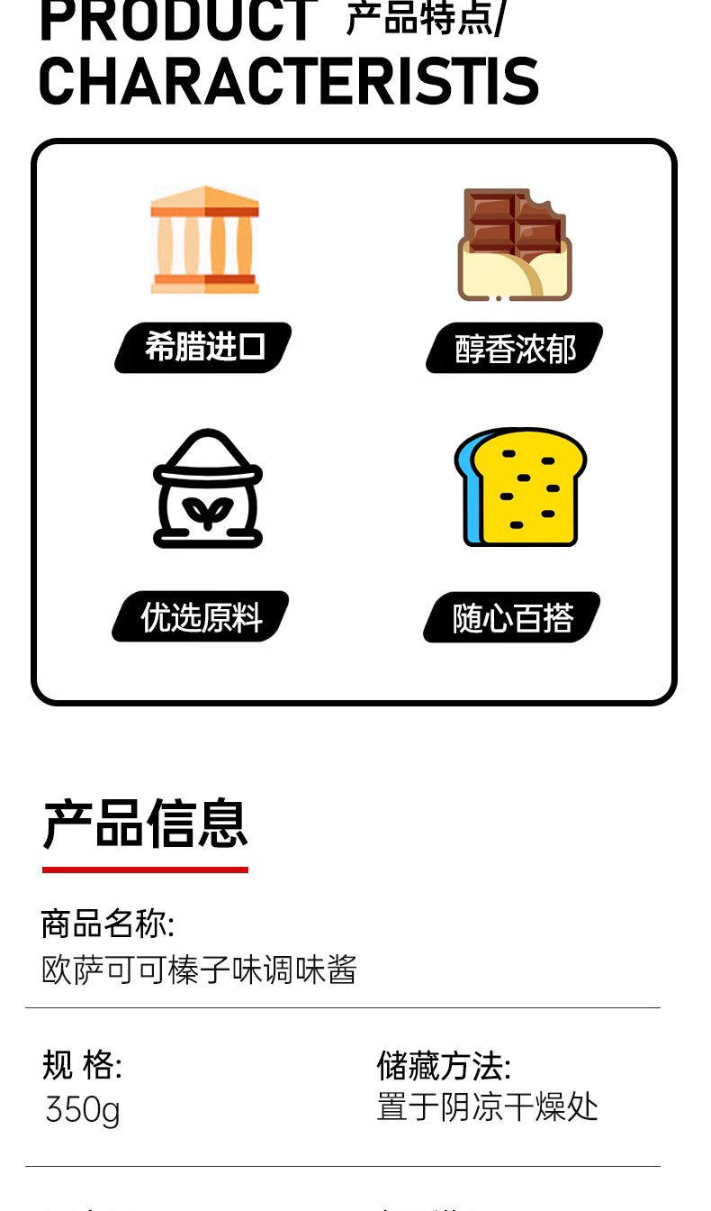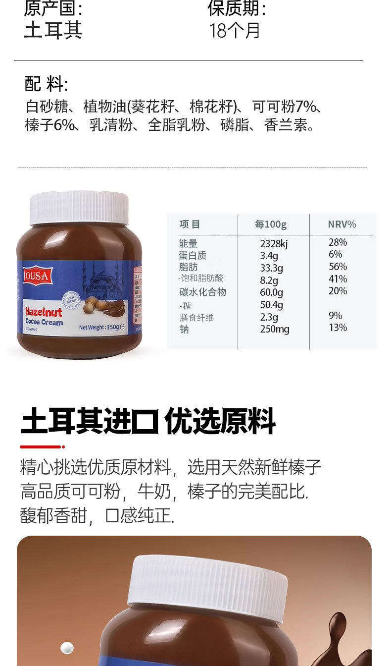 | Packaging specifications | Hazelnut cocoa paste 350g/bottle |