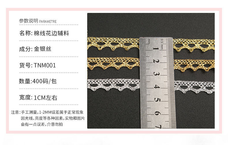 1cm gold and silver silk lace accessories hollow embroidery wedding dress skirt skirt lace decorative design TNM001