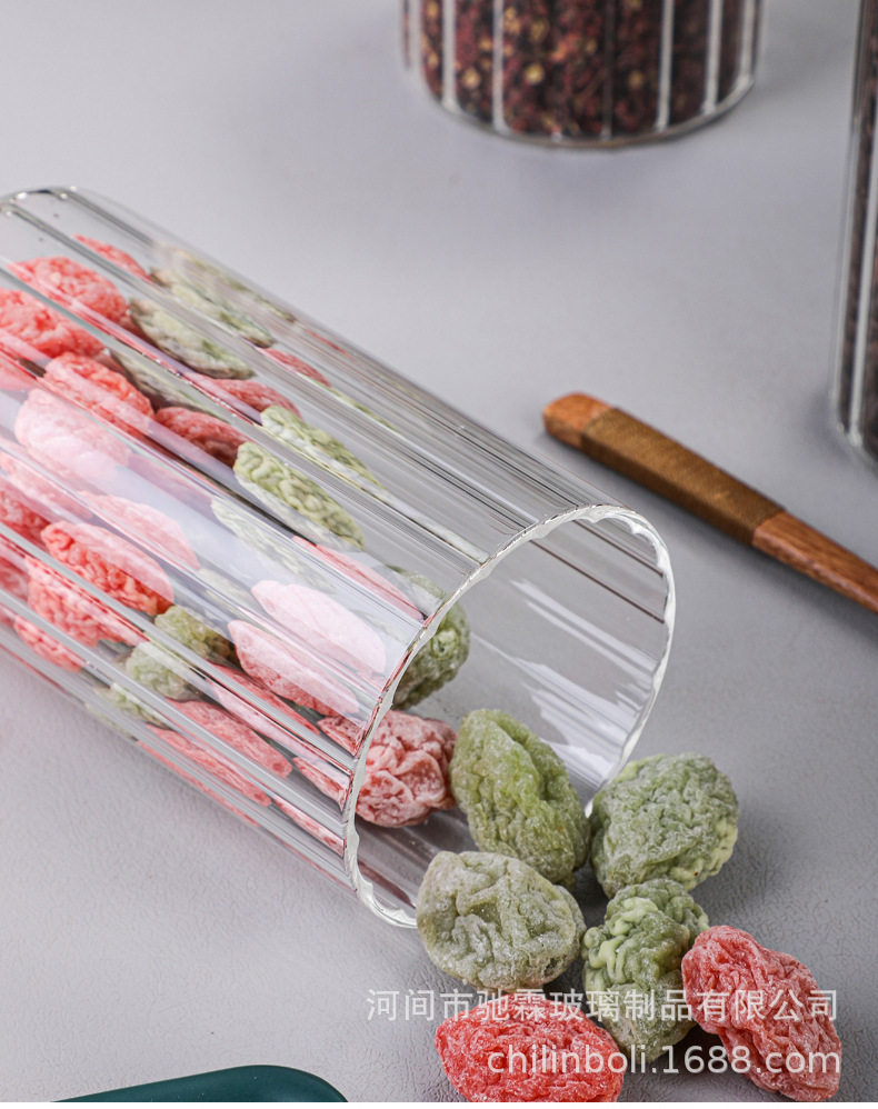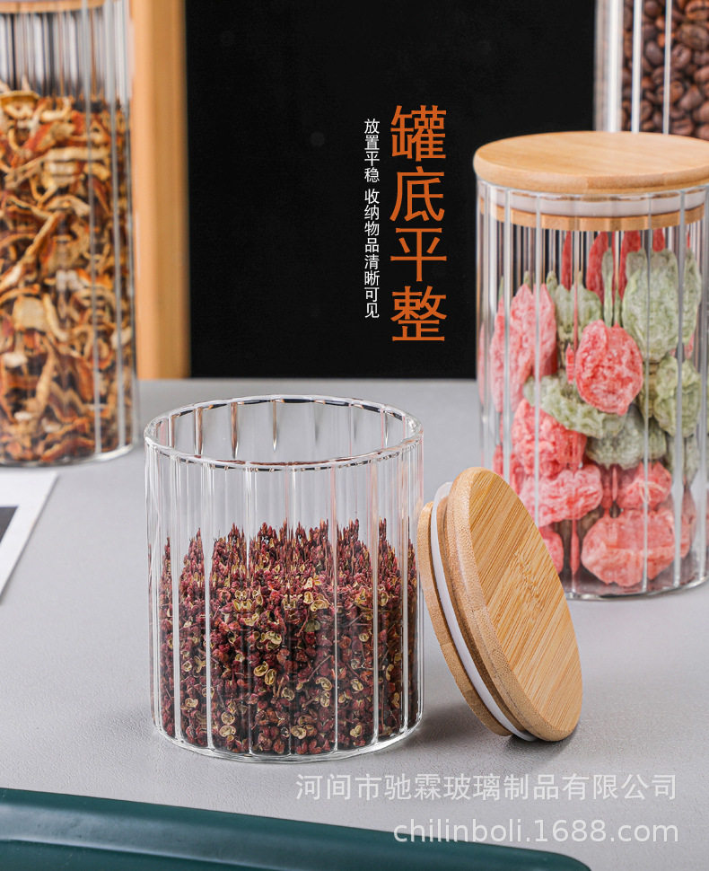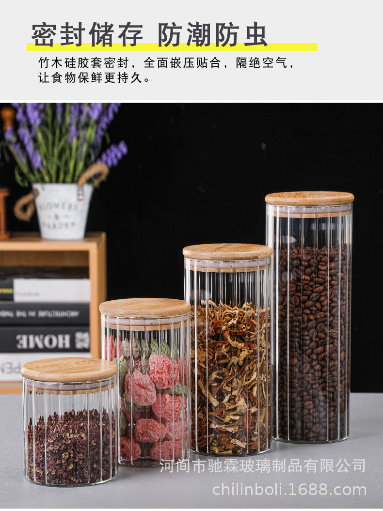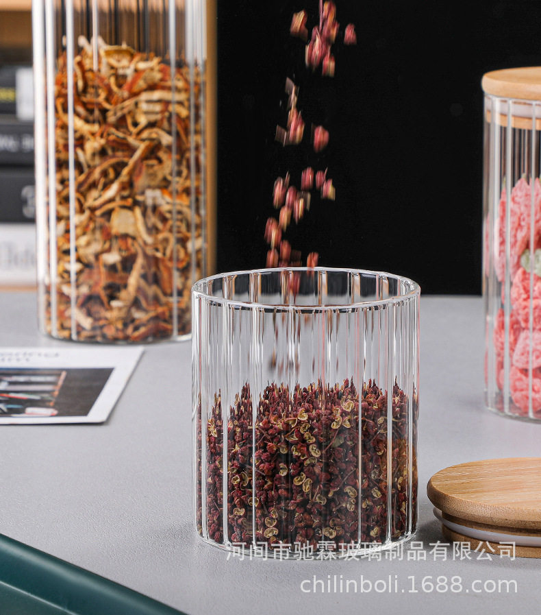 Vertical Striped Storage Jars in Various Sizes, Kitchen Storage Household Moisture-Proof Sealed Jars, High Borosilicate Glass Transparent Large Capacity