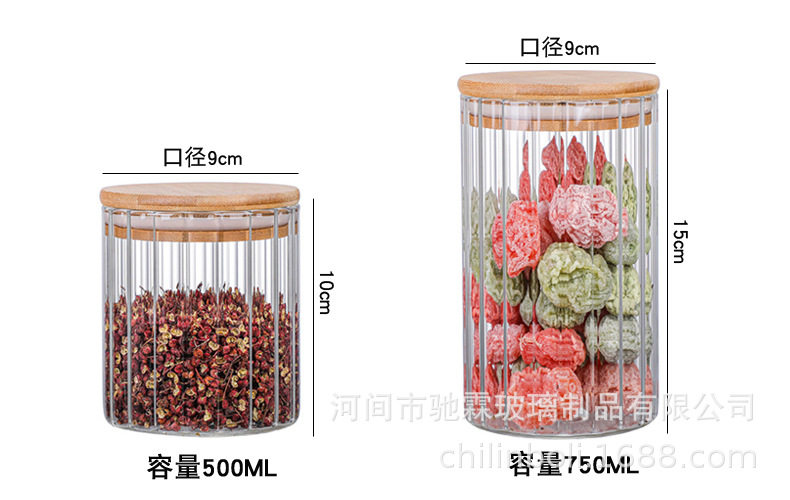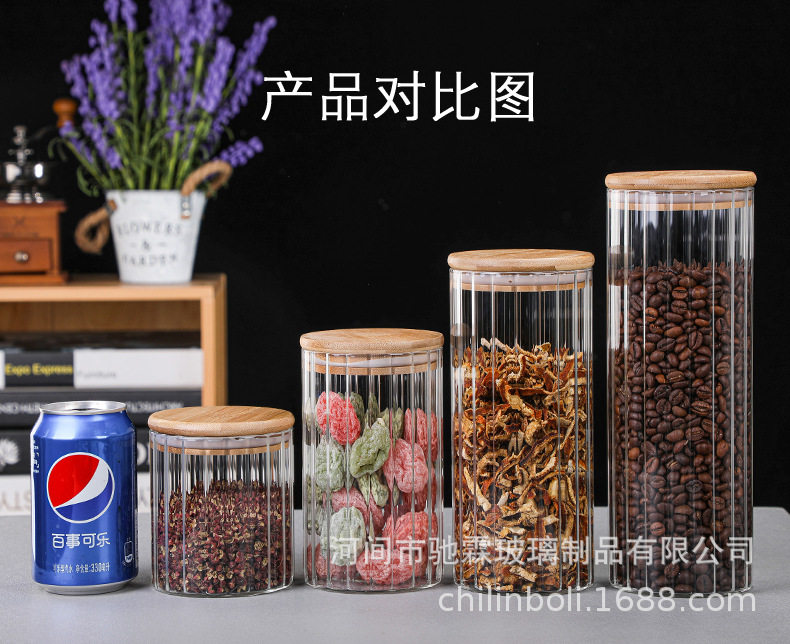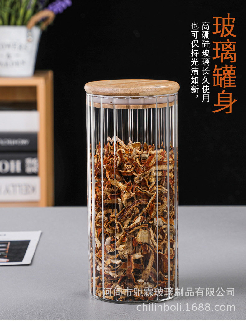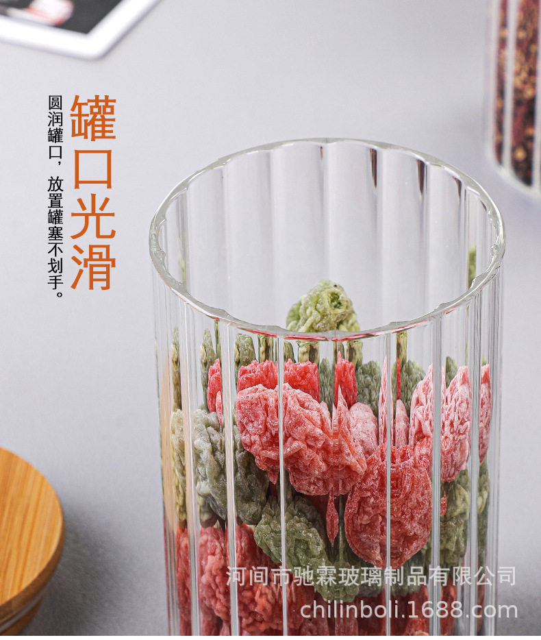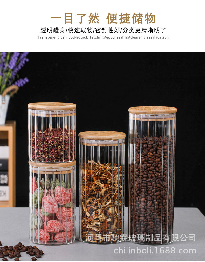 Vertical Striped Storage Jars in Various Sizes, Kitchen Storage Household Moisture-Proof Sealed Jars, High Borosilicate Glass Transparent Large Capacity