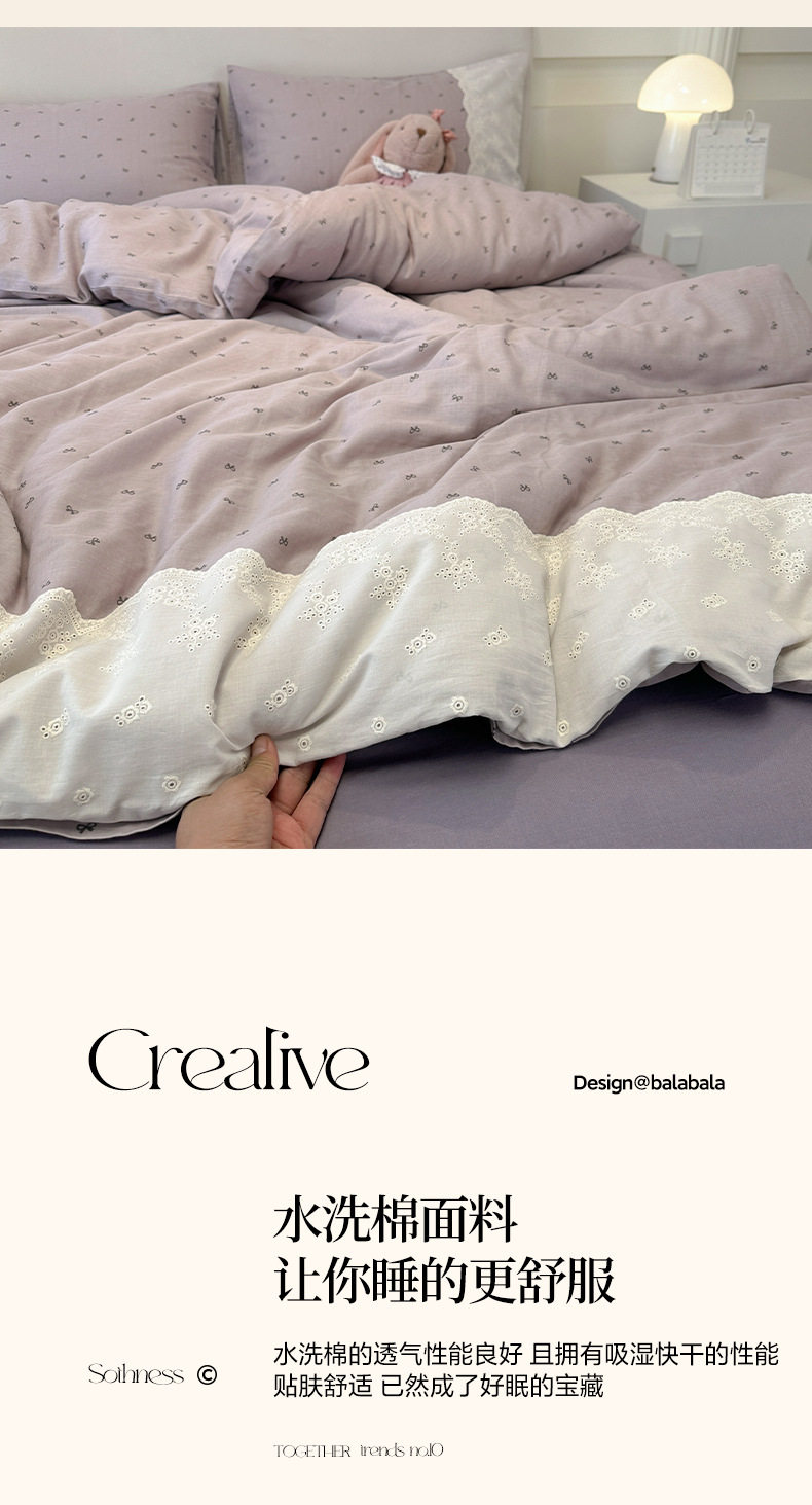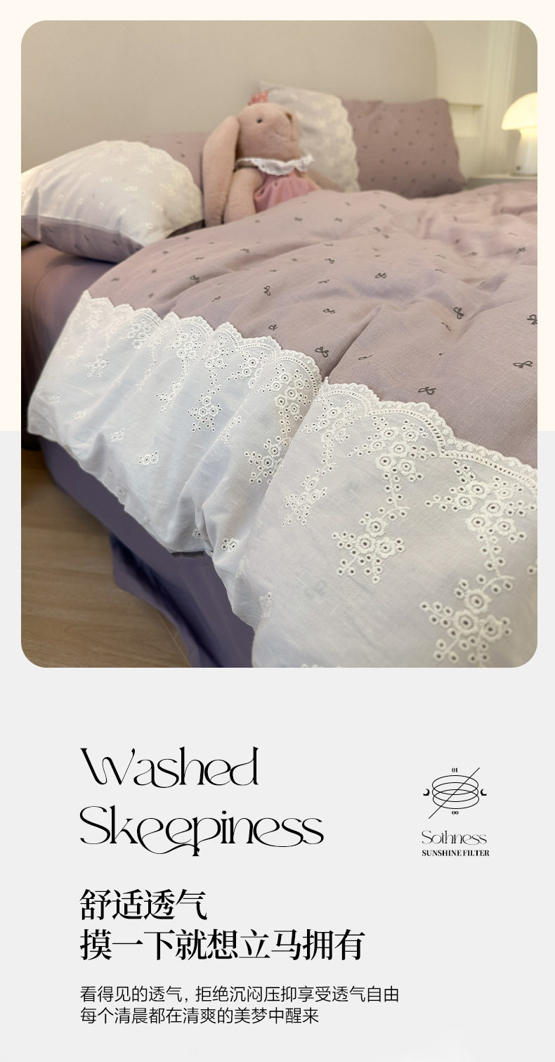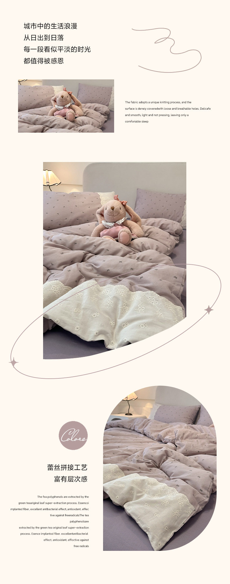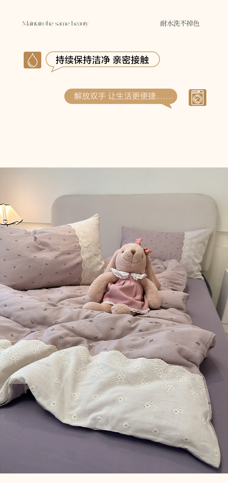 French Lace Bedding Four-piece Set Pure Cotton Cotton Quilt Cover Bed Sheet Quilt Cover Bedhat Dormitory Three-piece Set