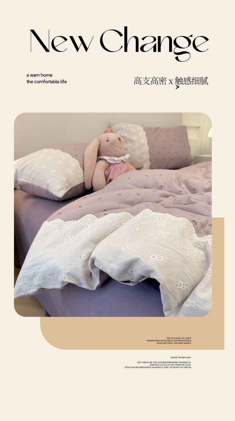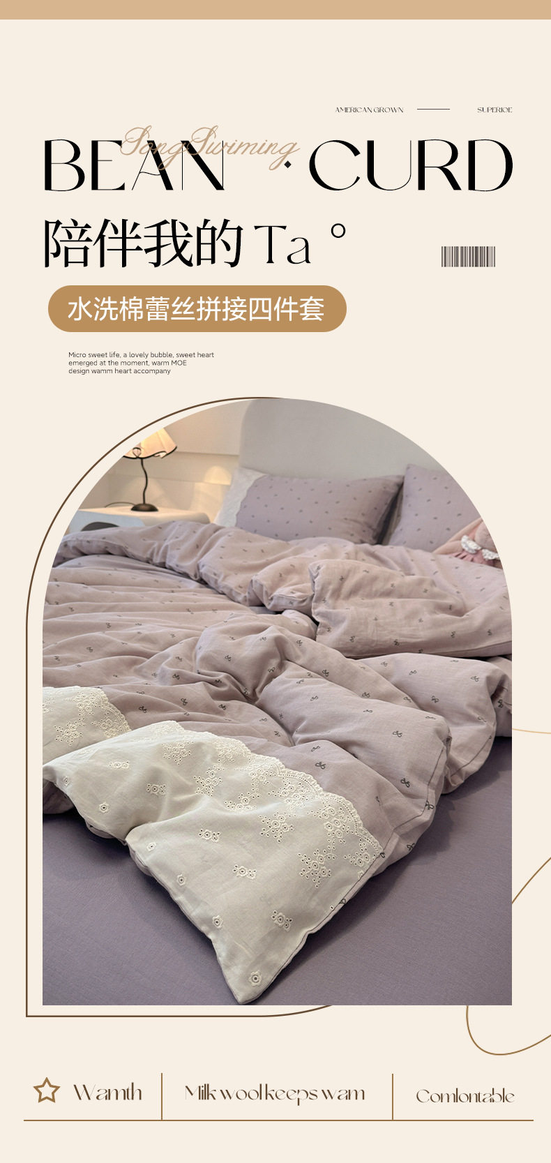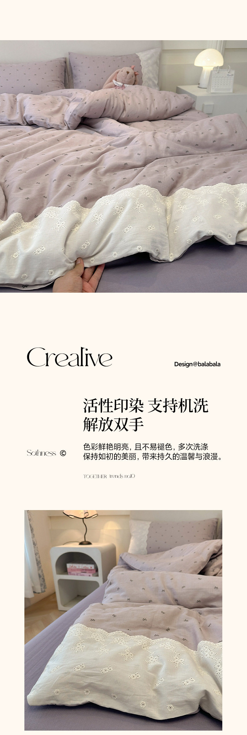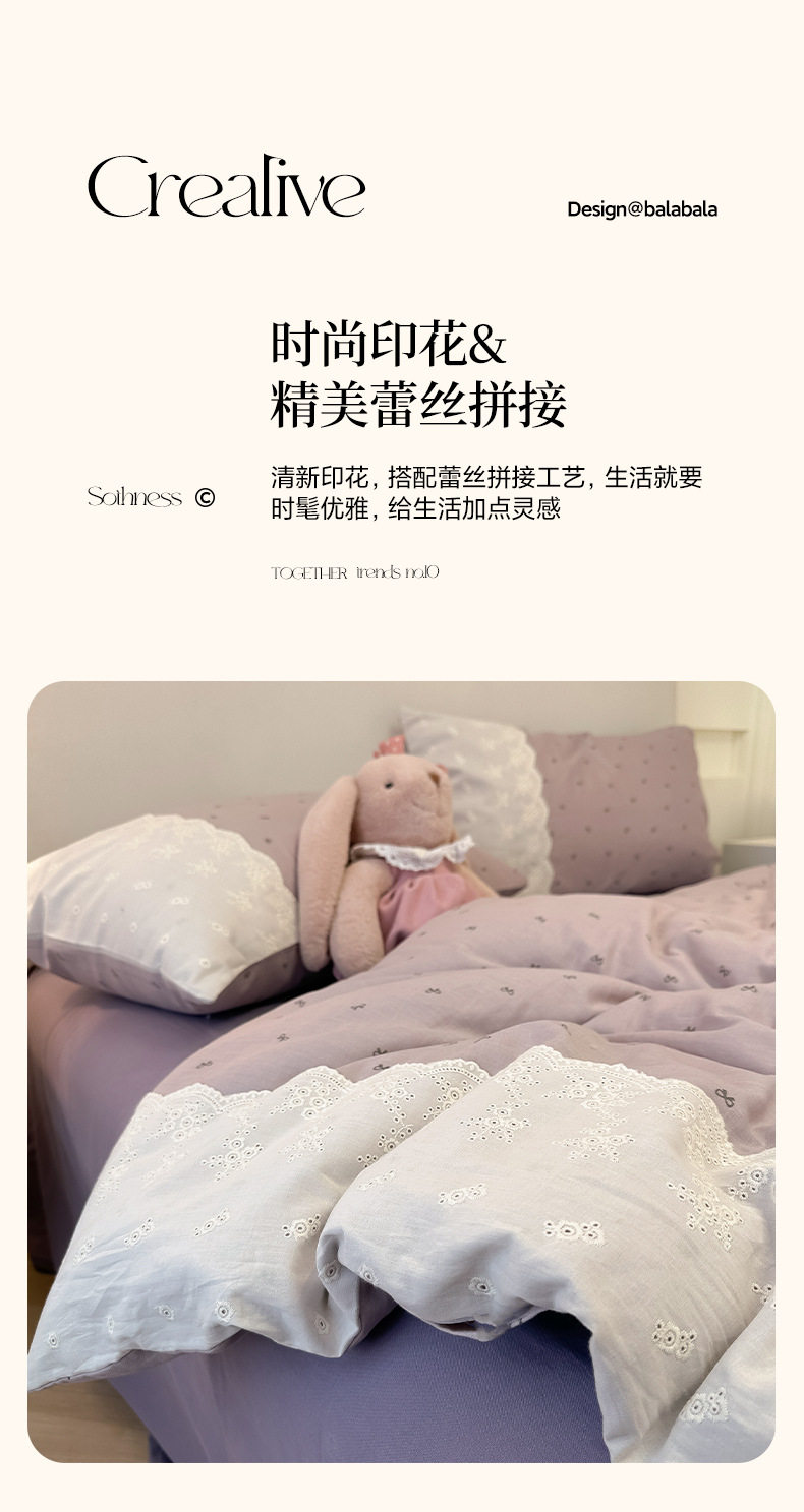 French Lace Bedding Four-piece Set Pure Cotton Cotton Quilt Cover Bed Sheet Quilt Cover Bedhat Dormitory Three-piece Set