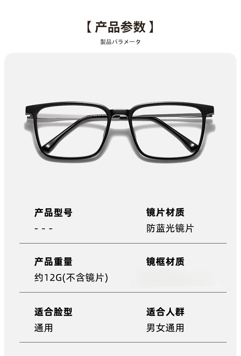 | Lens color | Anti-blue light flat mirror,Myopia -50 degrees,Myopia -100 degrees,Myopia -150 degrees,Myopia -200 degrees,Myopia -250 degrees,Myopia -300 degrees,Myopia -350 degrees,Myopia -400 degrees,Empty rack |