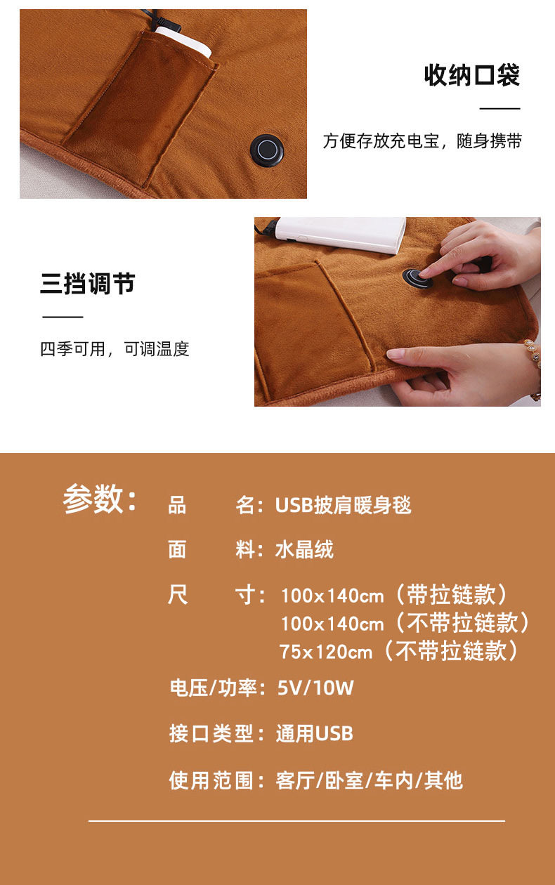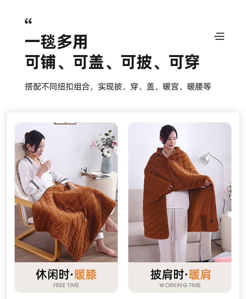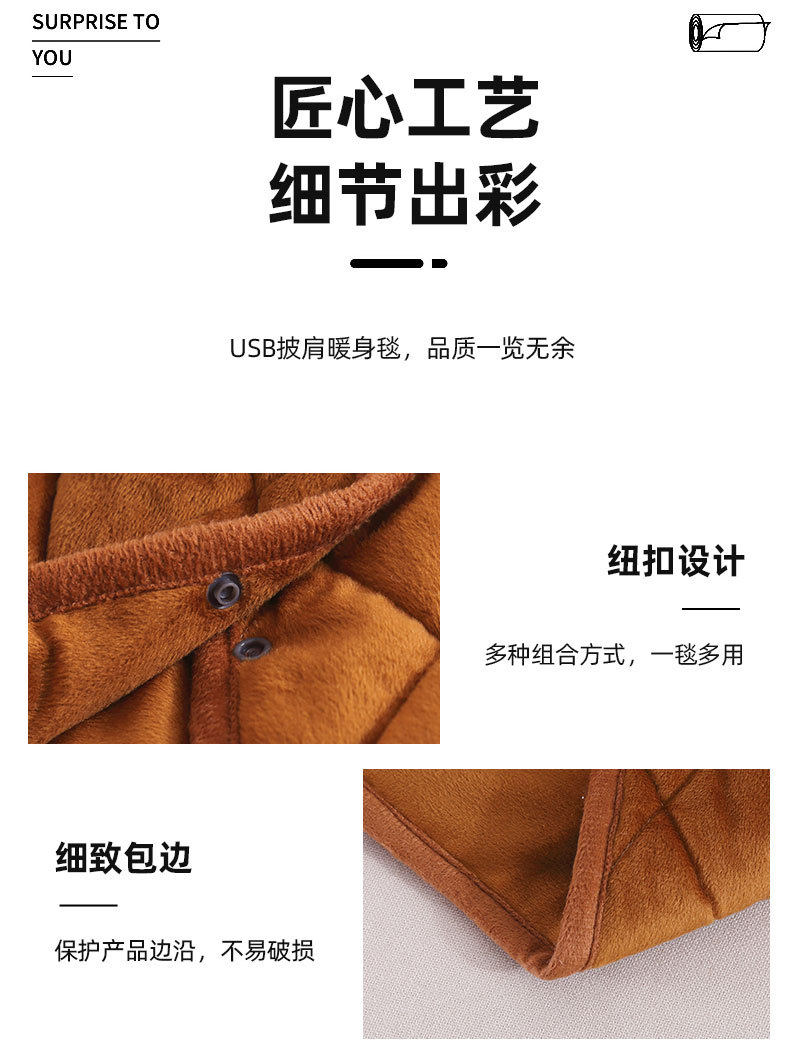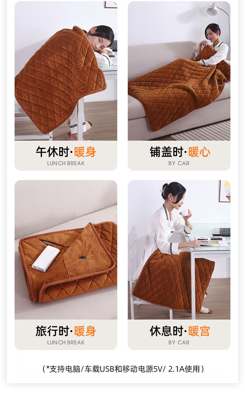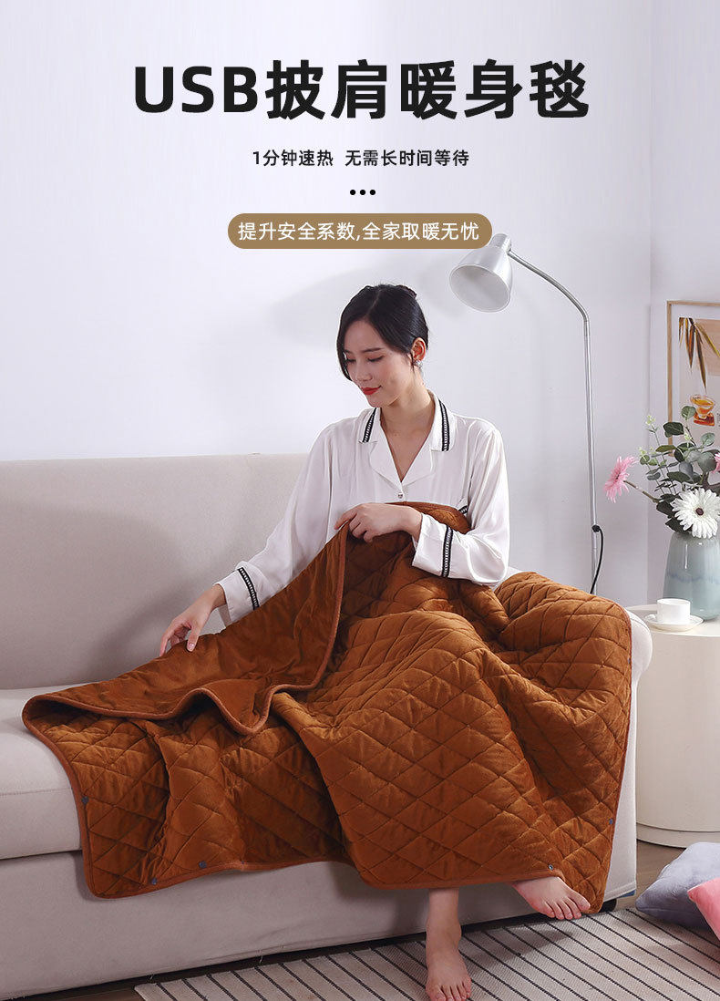 Cross-Border Hot-Selling USB Warming Blanket, Multifunctional Shawl Warming Blanket, 5V Low-Voltage Heating Blanket, 5-Volt Heated Blanket for Office Use