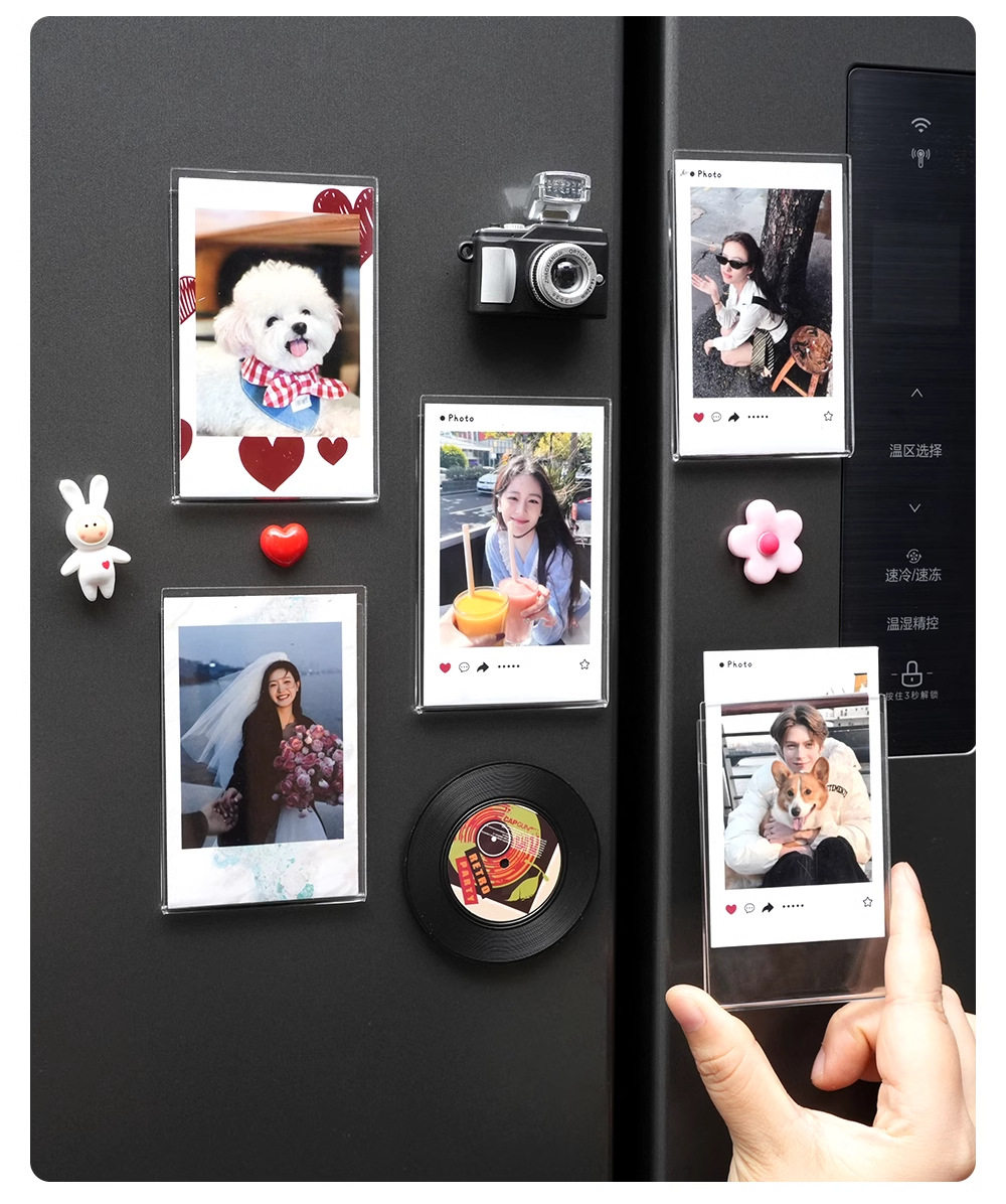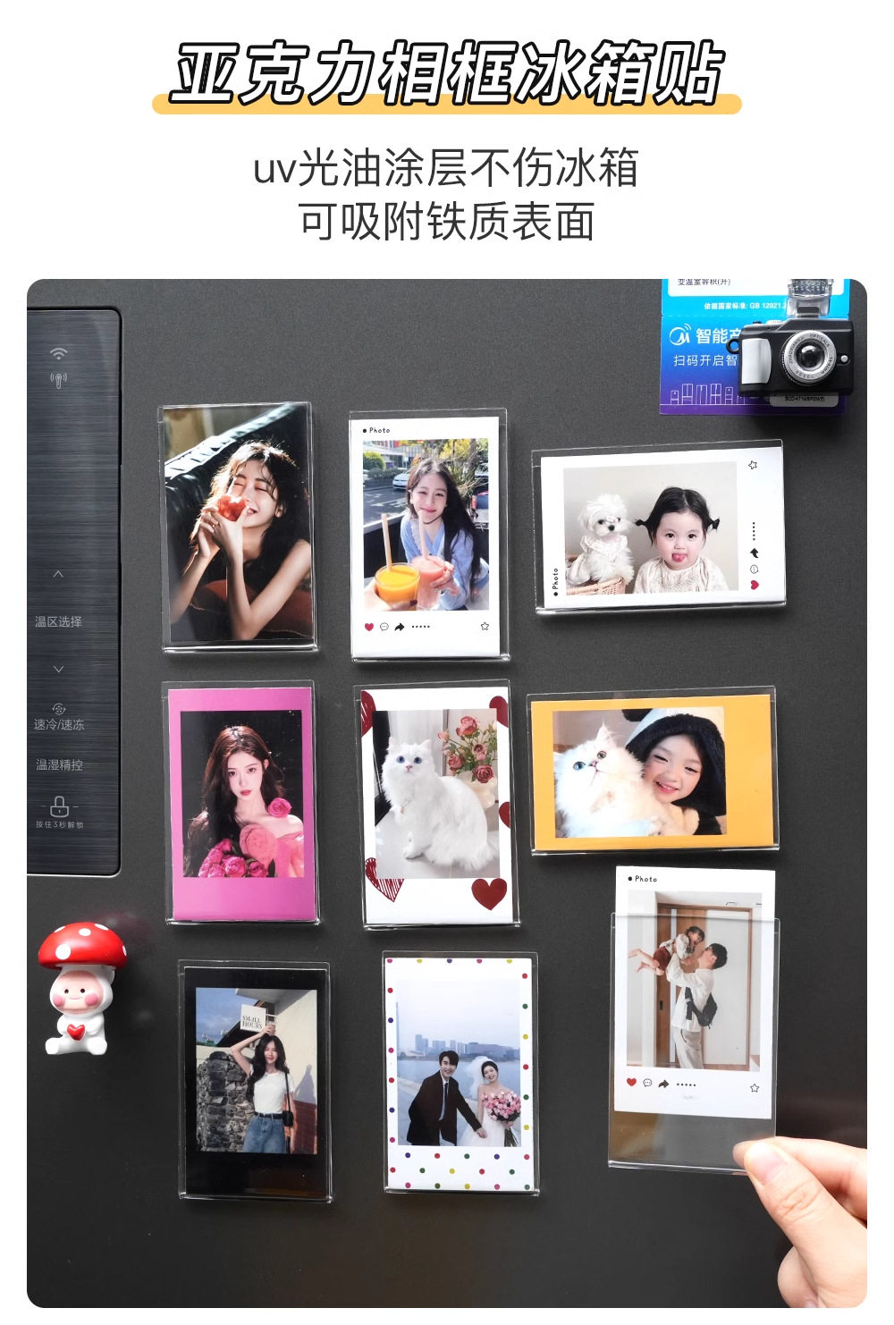 Magnetic Photo Frame Polygon Acrylic Photo Frame Transparent Small Card Cover Display Stand Marriage Certificate Photo Frame Refrigerator Sticker Diy2