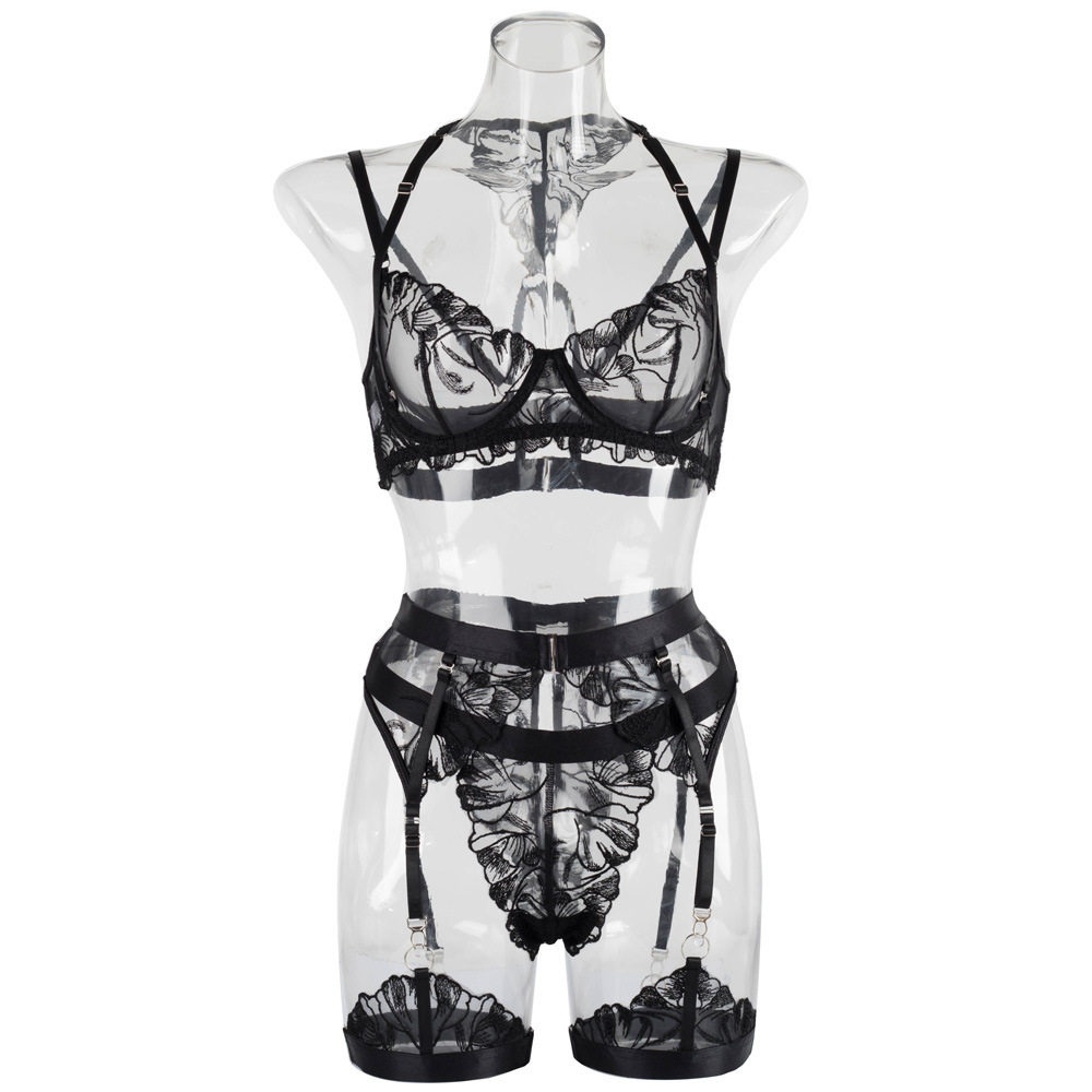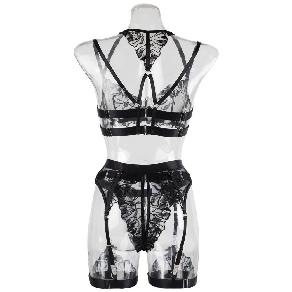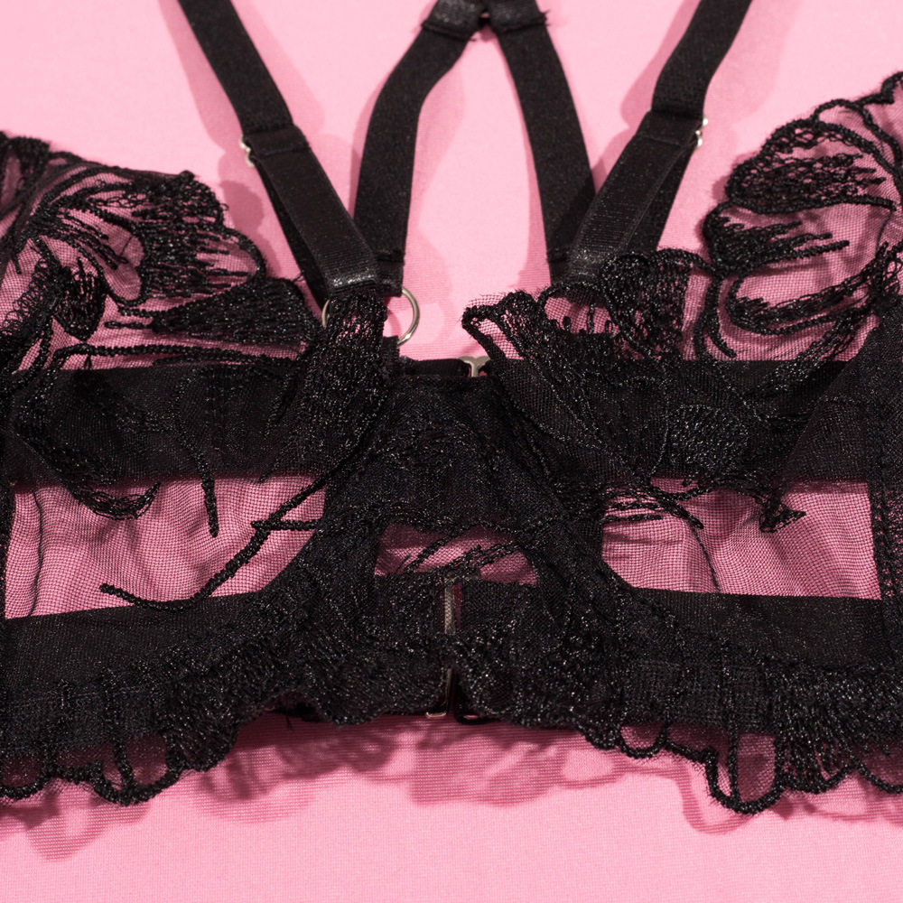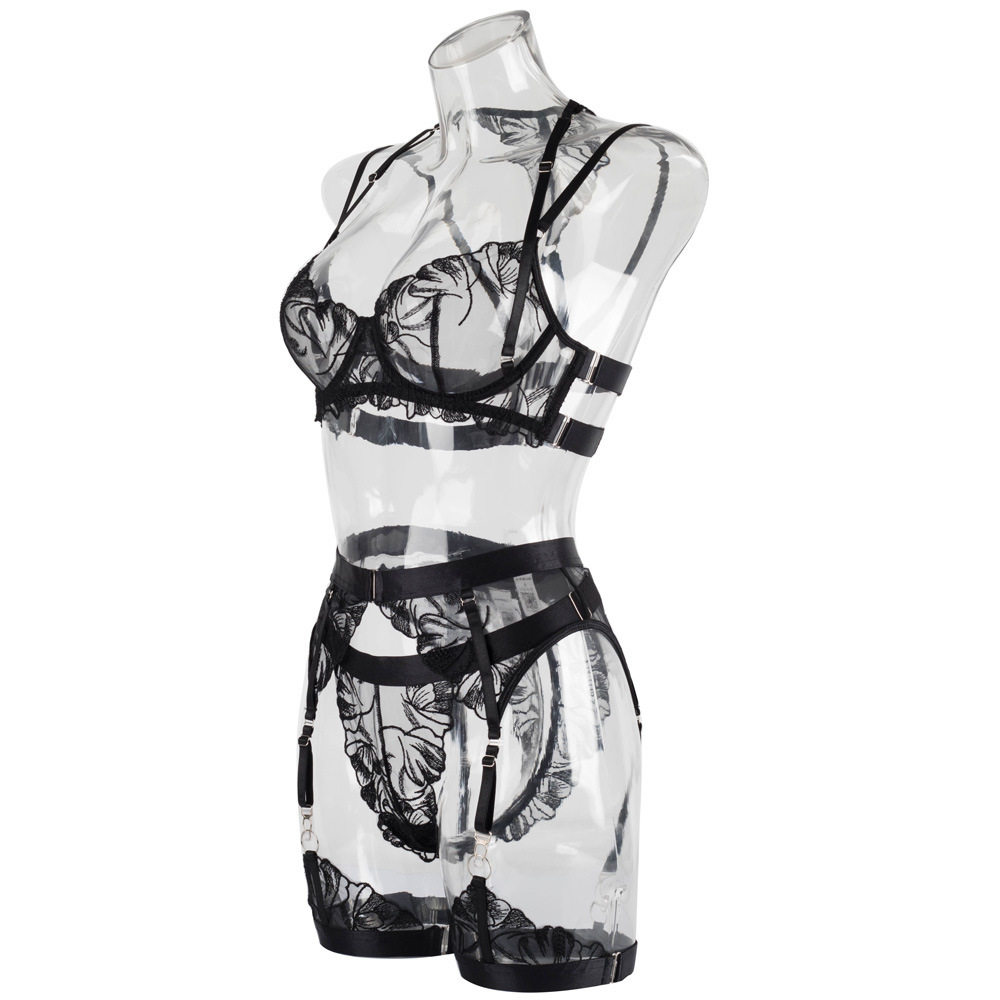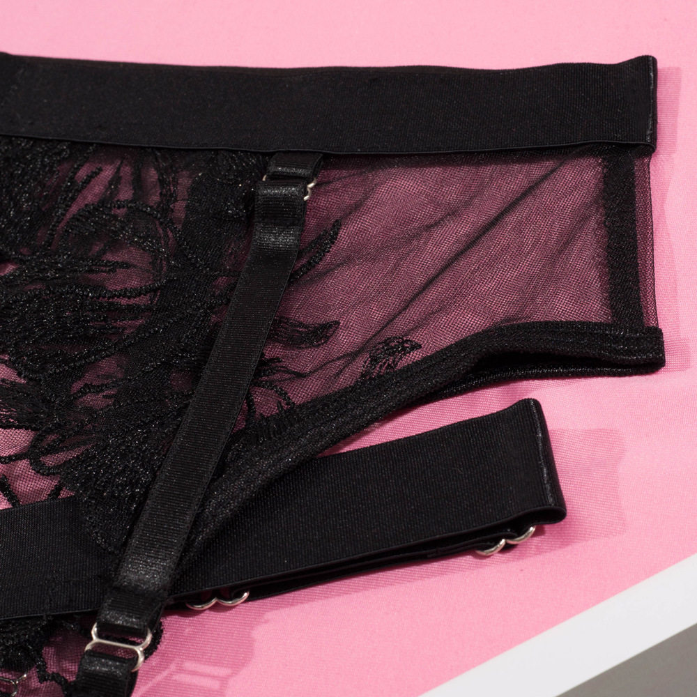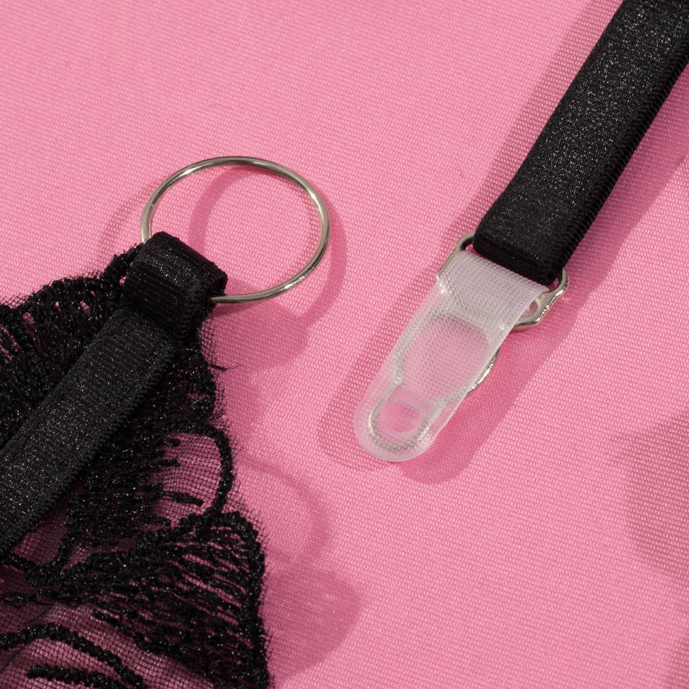 European and American foreign trade black embroidered high quality garter belt steel ring sexy underwear body shaping split suit LS1552