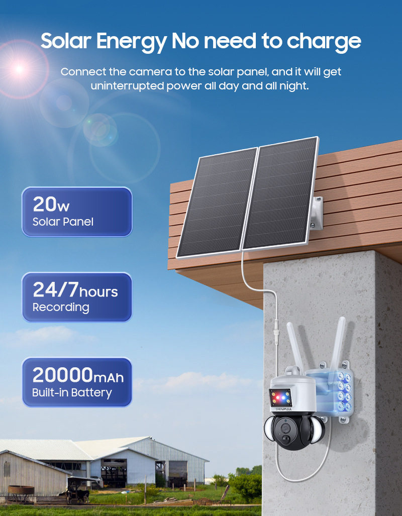 Cross-Border Surveillance Outdoor 4g Solar Camera 20W High Power All-Day Video 360-Degree Full-Color Dome Camera Night Vision