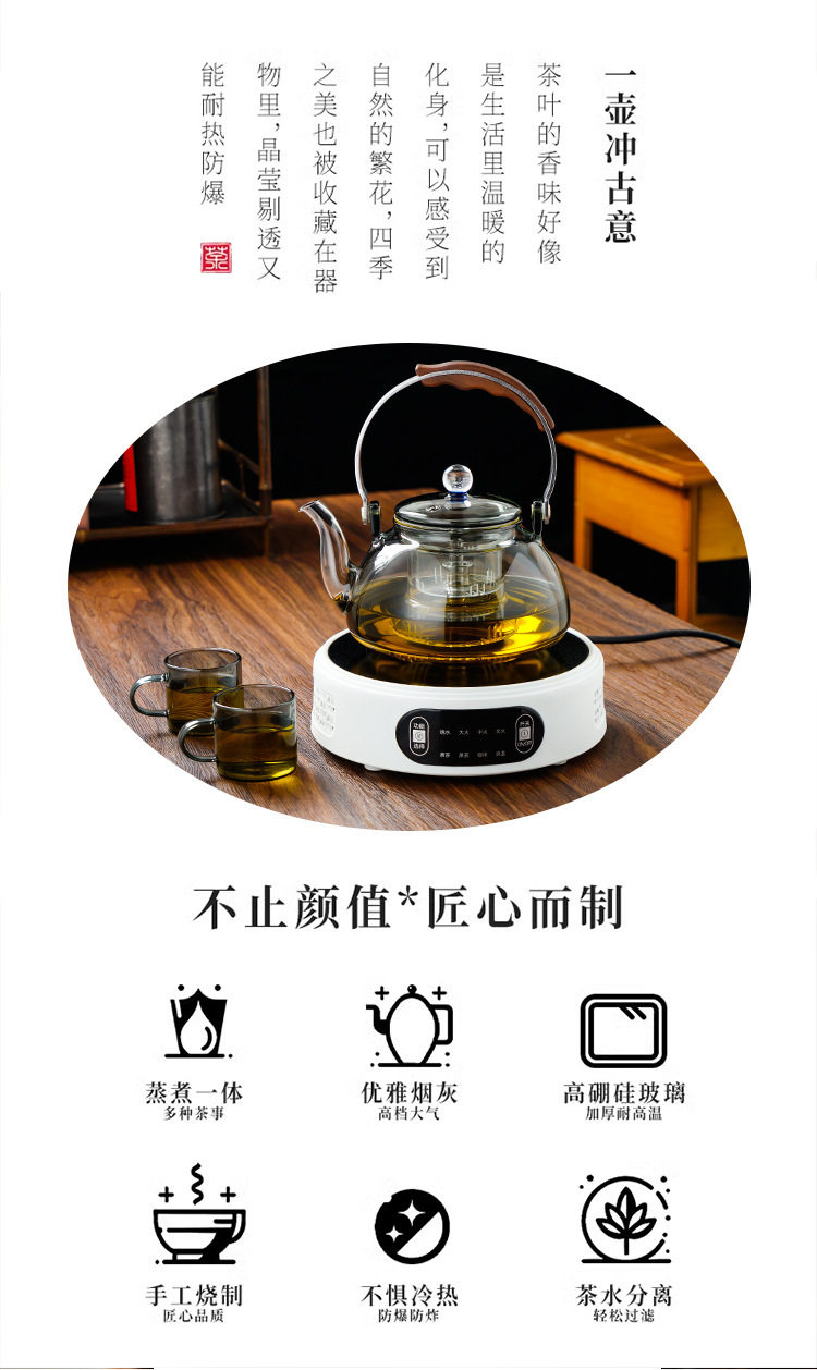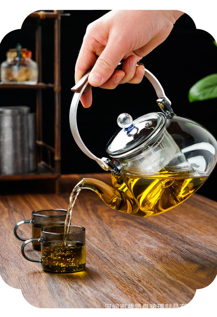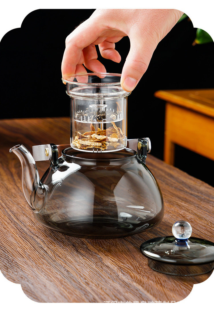 High Borosilicate Glass Teapot for Brewing Tea, Electric Ceramic Stove, Heat-Resistant Glass Teapot, Dual-Purpose Steaming and Cooking Teapot, Thickened Handle Teapot