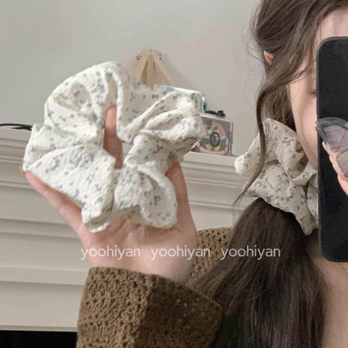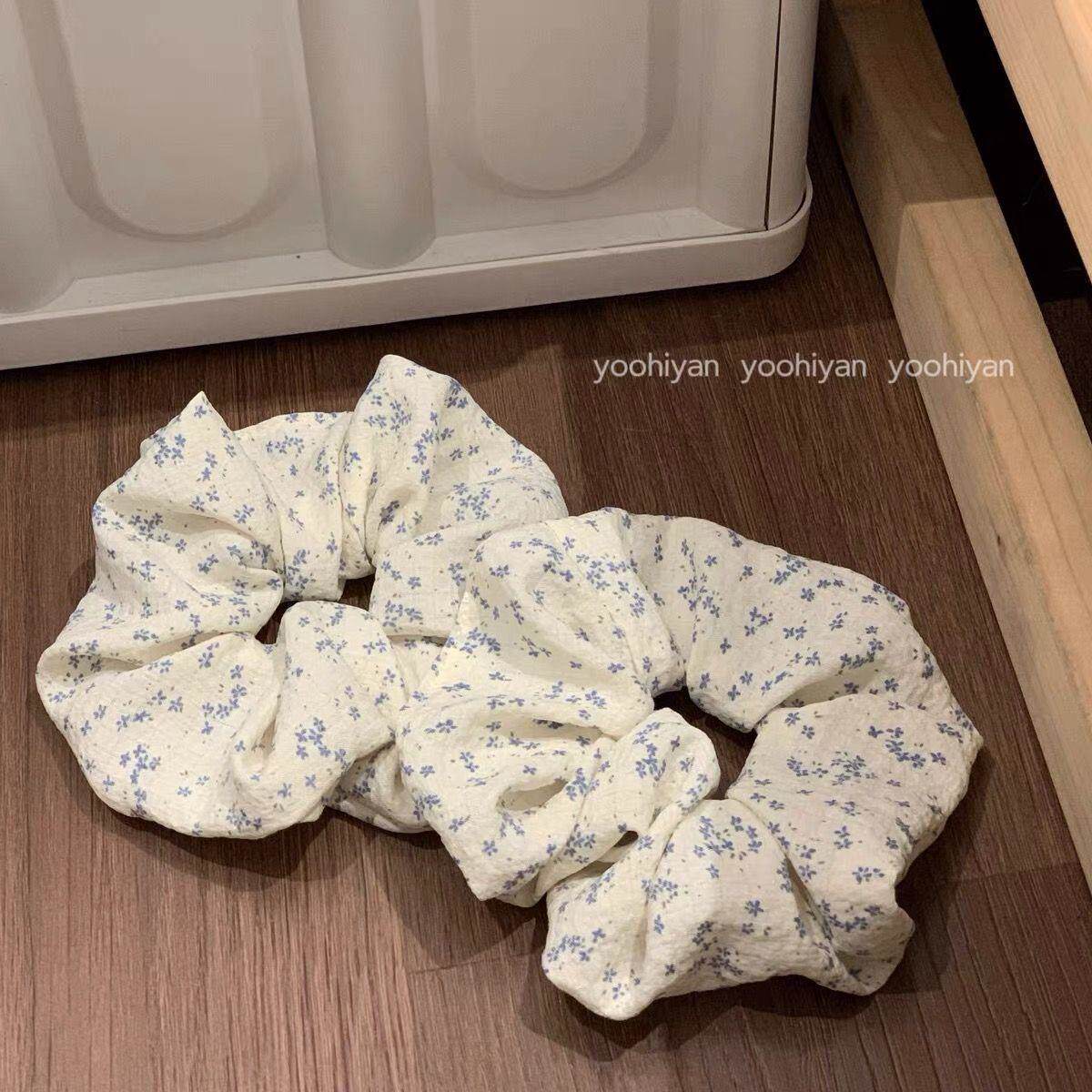 Korean-type Gentle Blue Floral Large Intestine Hair Ring for Women High-grade Sense Large Size Ball Head Flower Hair Rope Hair Rope Hair Accessories for Women