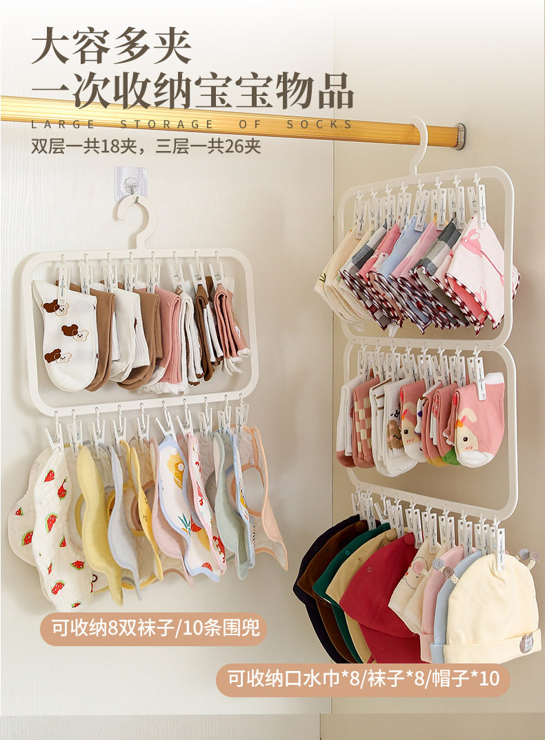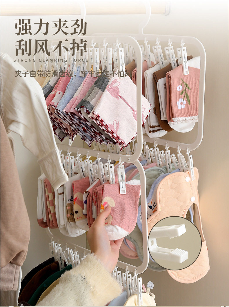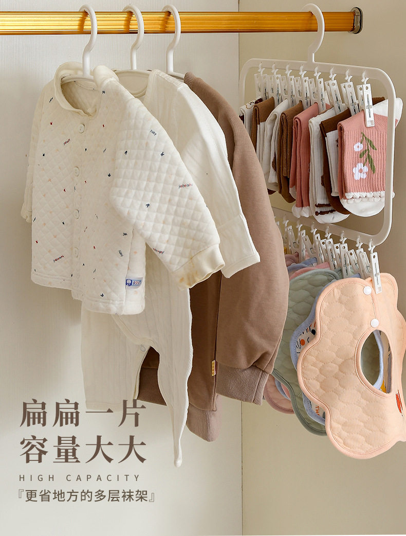 Multi-Clip Kidsren's Clothes Hanger, Home Wardrobe Storage Artifact, Baby Socks Drying Rack, Multi-Functional Baby Clothes Hanger