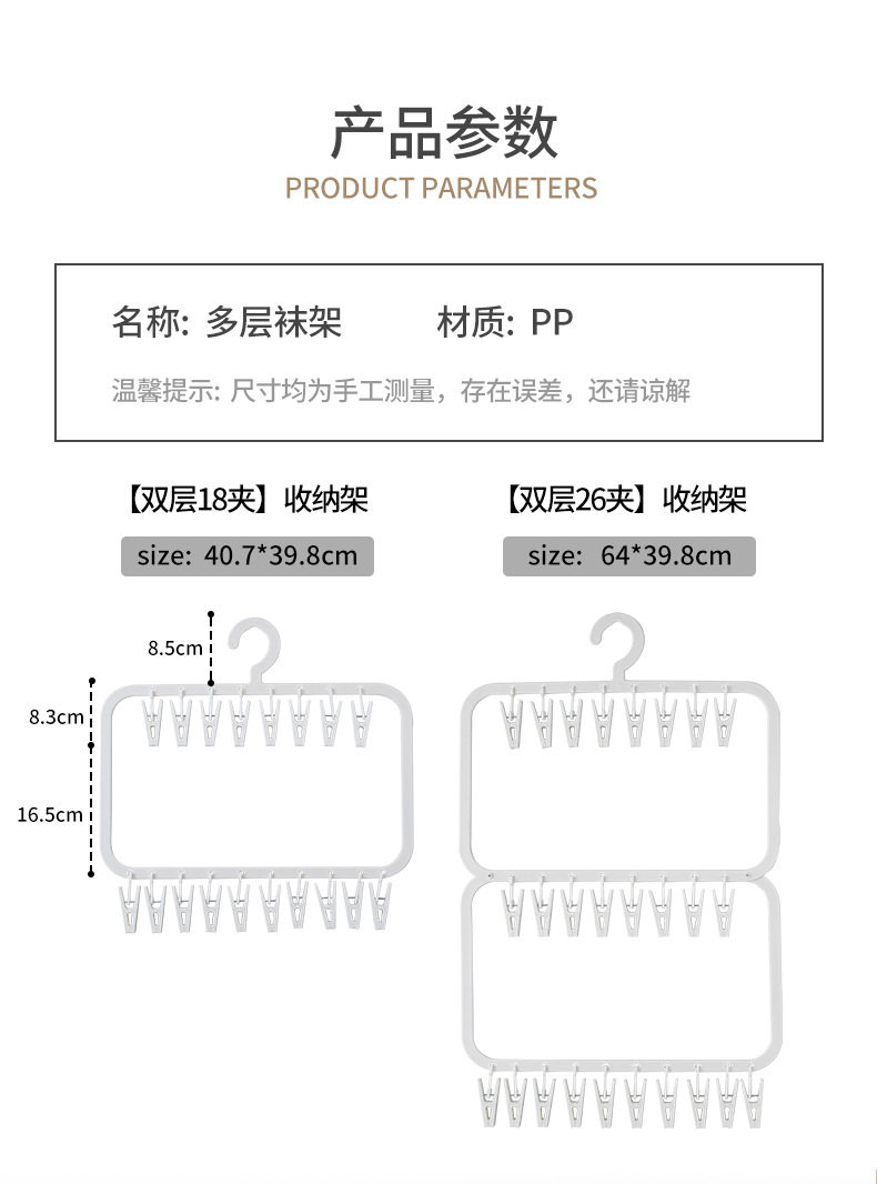 | Color | [double-layer 18 clips] integrated storage and drying rack,[three layers, 26 clips] integrated storage and drying rack,Plastic sock clips-10 clips-pink,Plastic sock clips-10 clips-white,Plastic sock clips-10 clips-blue,Rabbit clothespin-white orange |