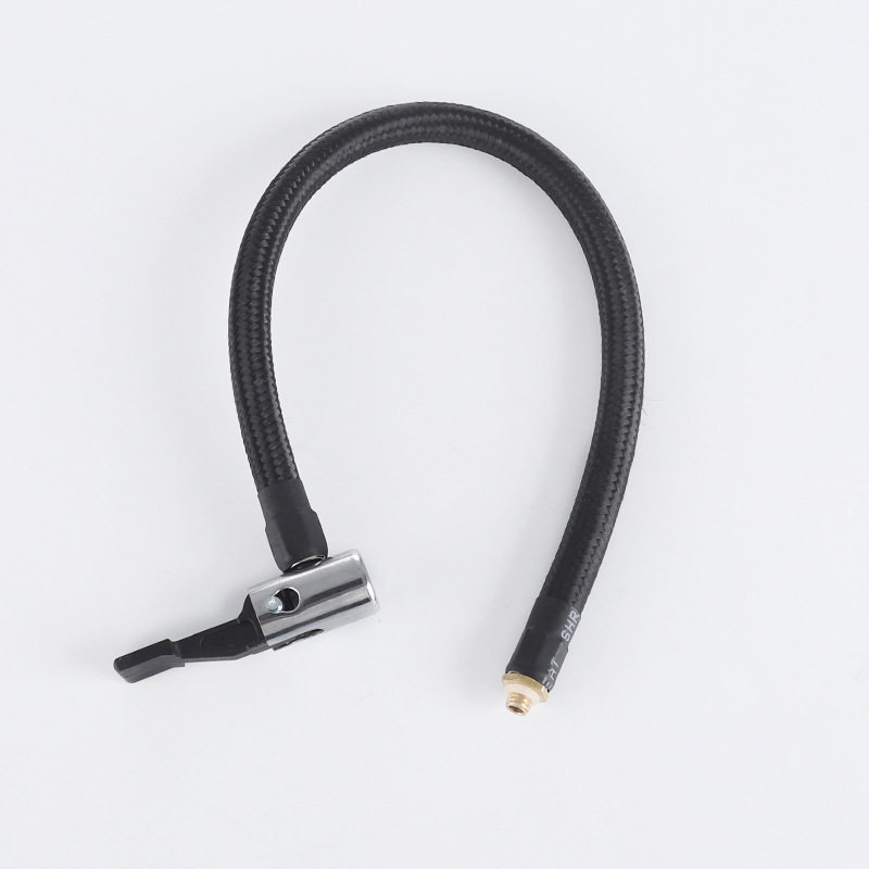 Press-Type Car Air Pump with 30cm Inflation Hose, M6 Hexagonal Copper Connector, and Tire Pressure Gauge for Vehicle Use