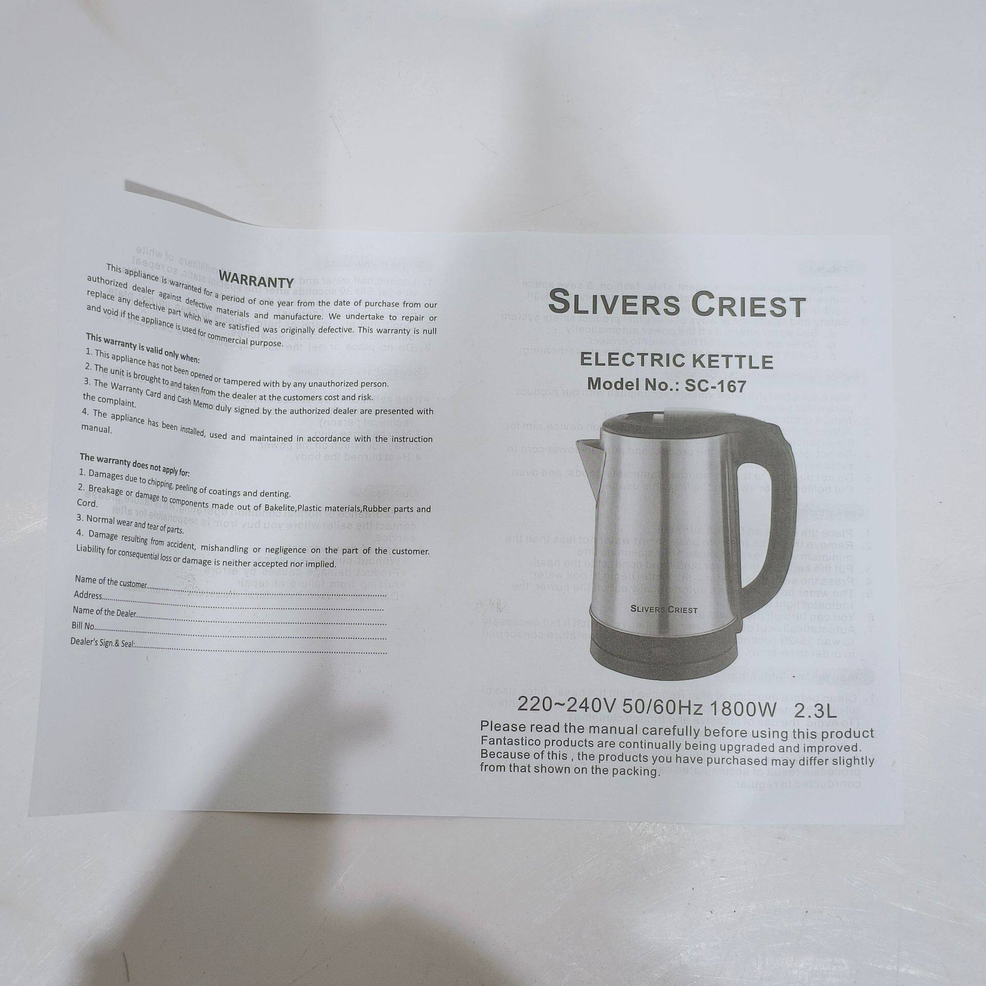 | Color | Stainless steel original color [european plug] 2.3 liters |