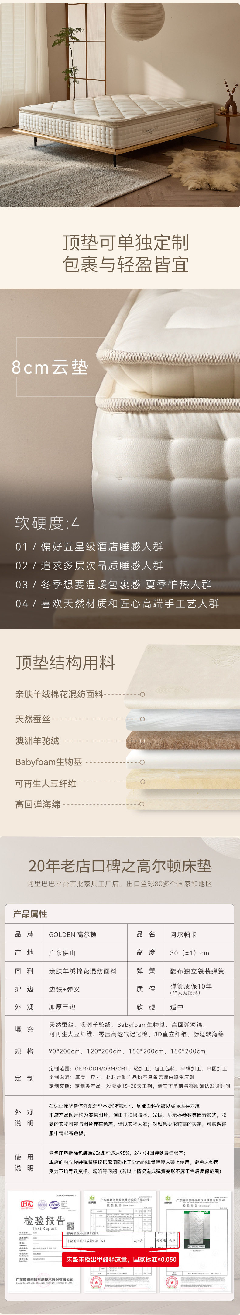 | Filling material | Natural silk+alpaca wool+babyfoam+soybean fiber+zero pressure memory foam+3d fiber |