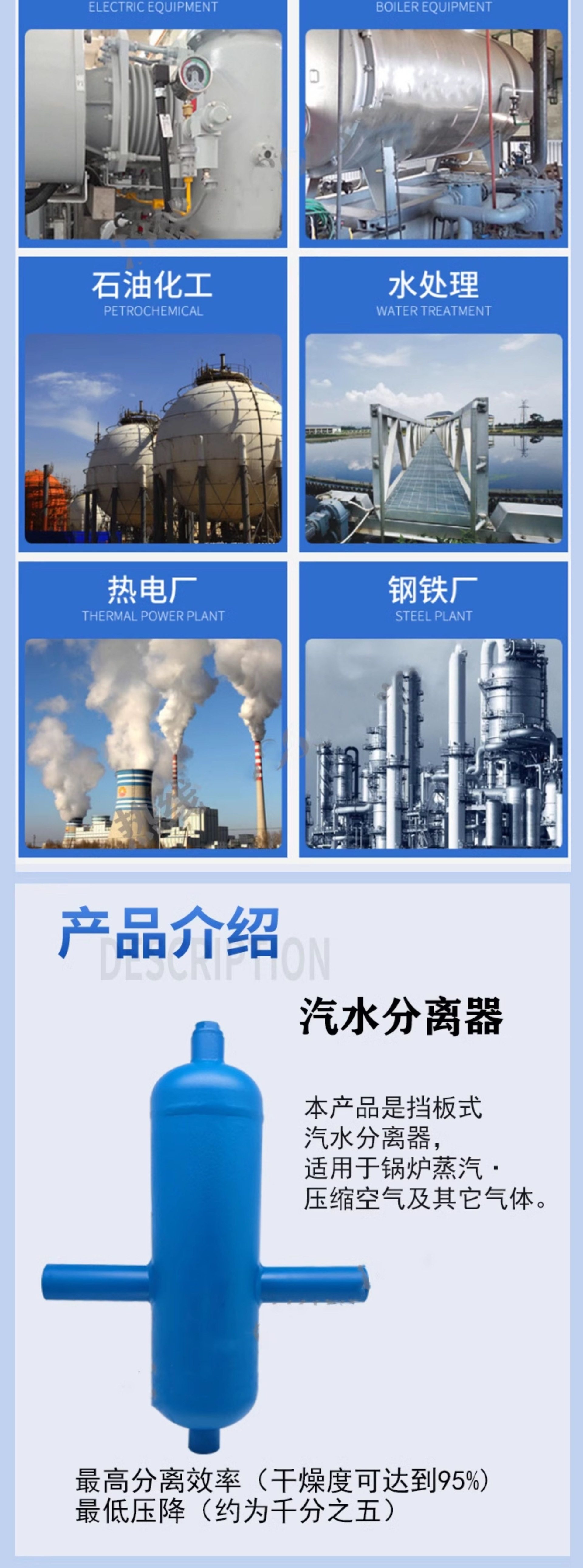 | Specification | Baffle type dn10 (carbon steel),Baffle type dn25 (carbon steel),Baffle type dn32 (carbon steel),Baffle type dn50 (carbon steel),Baffle type dn65 (carbon steel),Baffle type dn80 (carbon steel),Baffle type dn100 (carbon steel),Baffle type dn125 (carbon steel),Baffle type dn150 (carbon steel),Baffle type dn200 (carbon steel),Baffle type dn250 (carbon steel),Baffle type dn300 (carbon steel),Stainless steel, cyclone style customization |