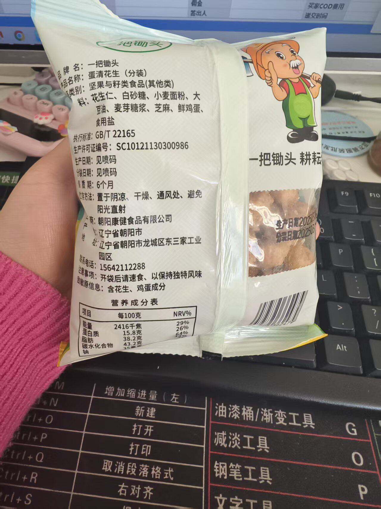 | Raw materials and ingredients | Peanut kernels, white sugar, wheat flour, soybean oil, maltose syrup, sesame seeds, fresh eggs, edible salt |