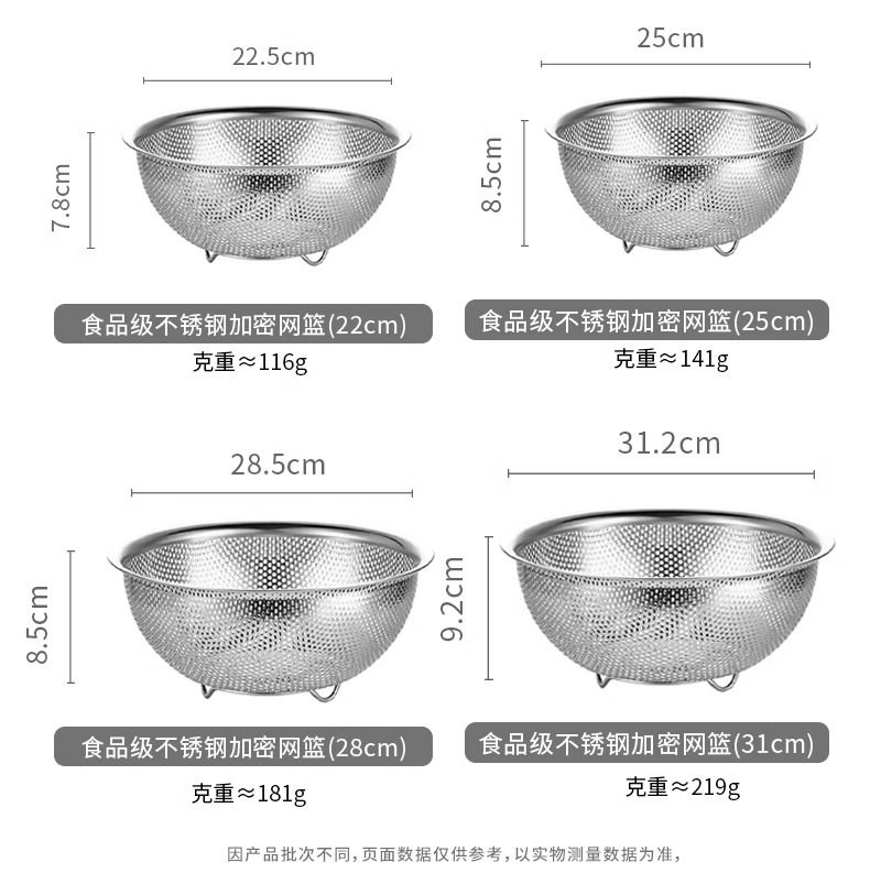 | Color | 16.5cm drain basket,19.5cm drain basket,22.5cm drain basket,25.5cm drain basket,28.5cm drain basket,31.5cm drain basket,[304 steel] 16cm thickened basin,[304 steel] 19cm thickened basin,[304 steel] 22cm thickened basin,[304 steel] 25cm thickened basin,[304 steel] 28cm thickened basin,[304 steel] 31cm thickened basin |