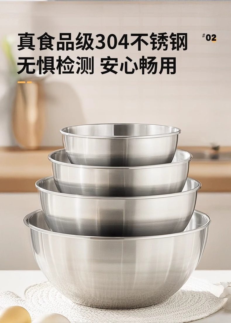 Stainless Steel Basin for Washing Vegetables, Household Egg-Beating and Dough Basin, Kitchen Rice Washer, Rice Sieve and Drain Basket