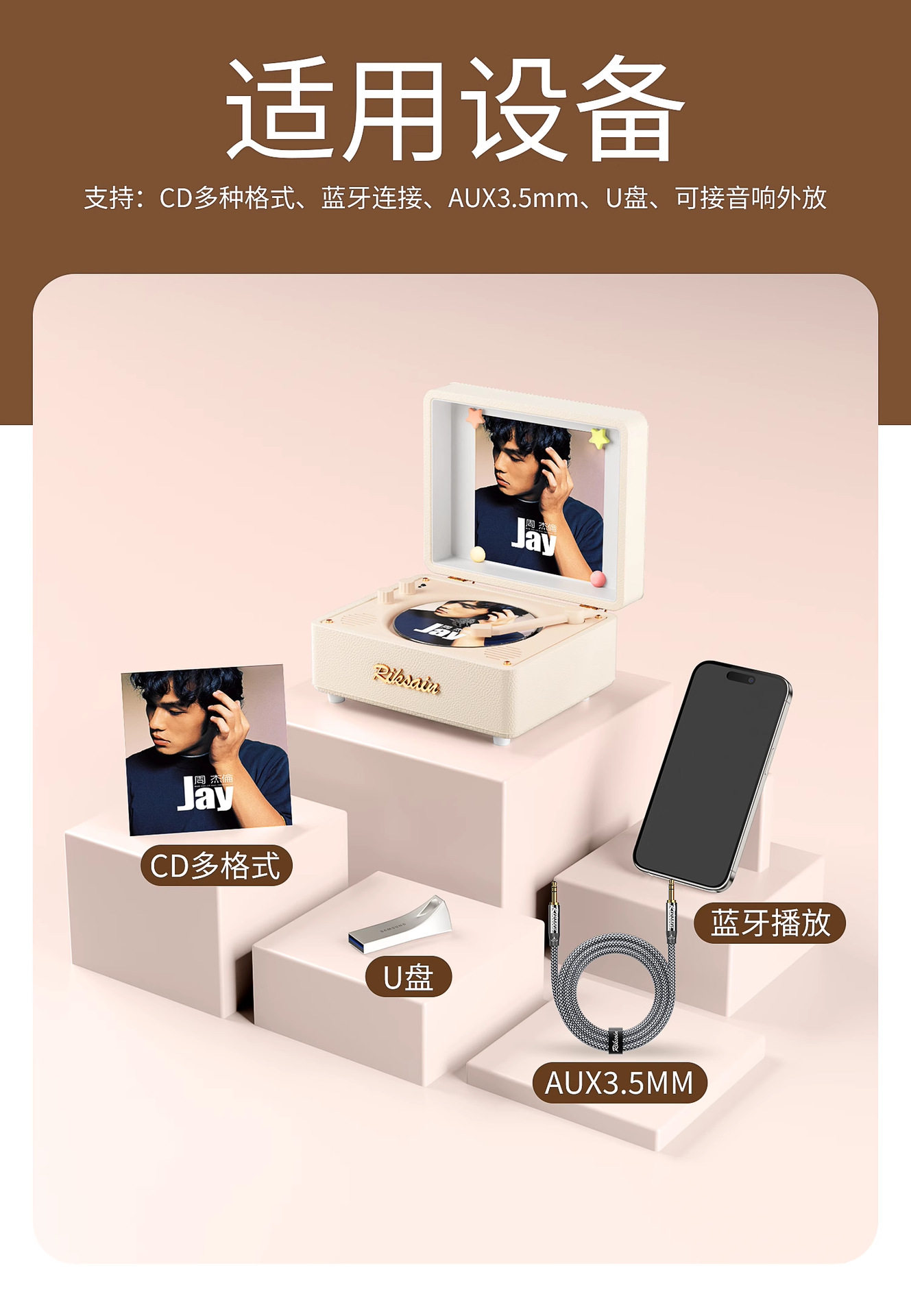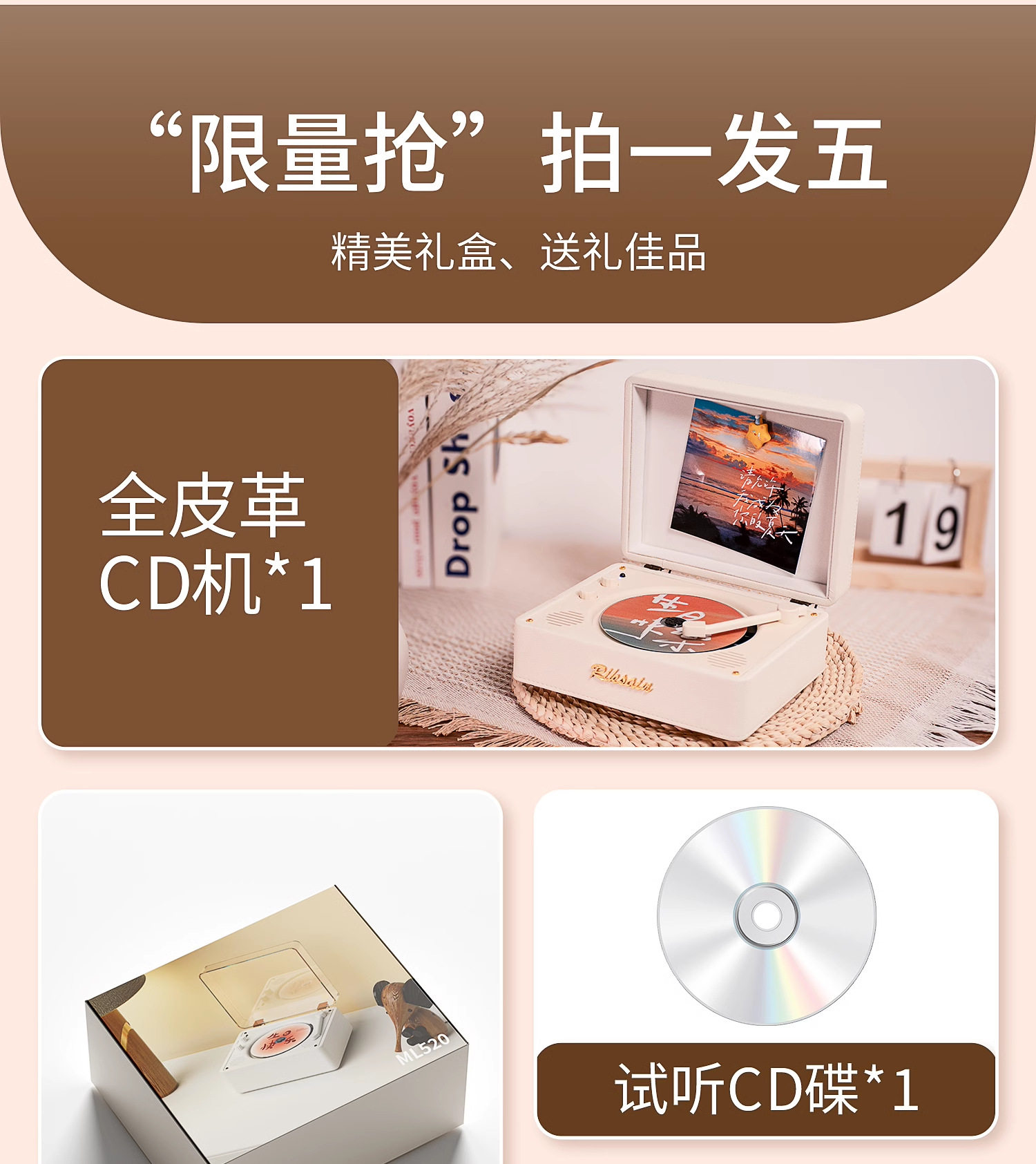 Leksen Ml525I Leather Cd Player Music Album Record Retro Player Bluetooth Audio Birthday Gift