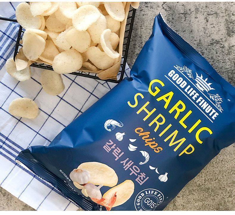 Korean Qulai Fu Garlic Flavor Crab Flavor Shrimp Chips 82G/Bag Internet-Famous Potato Chips Office Leisure Puff Snack