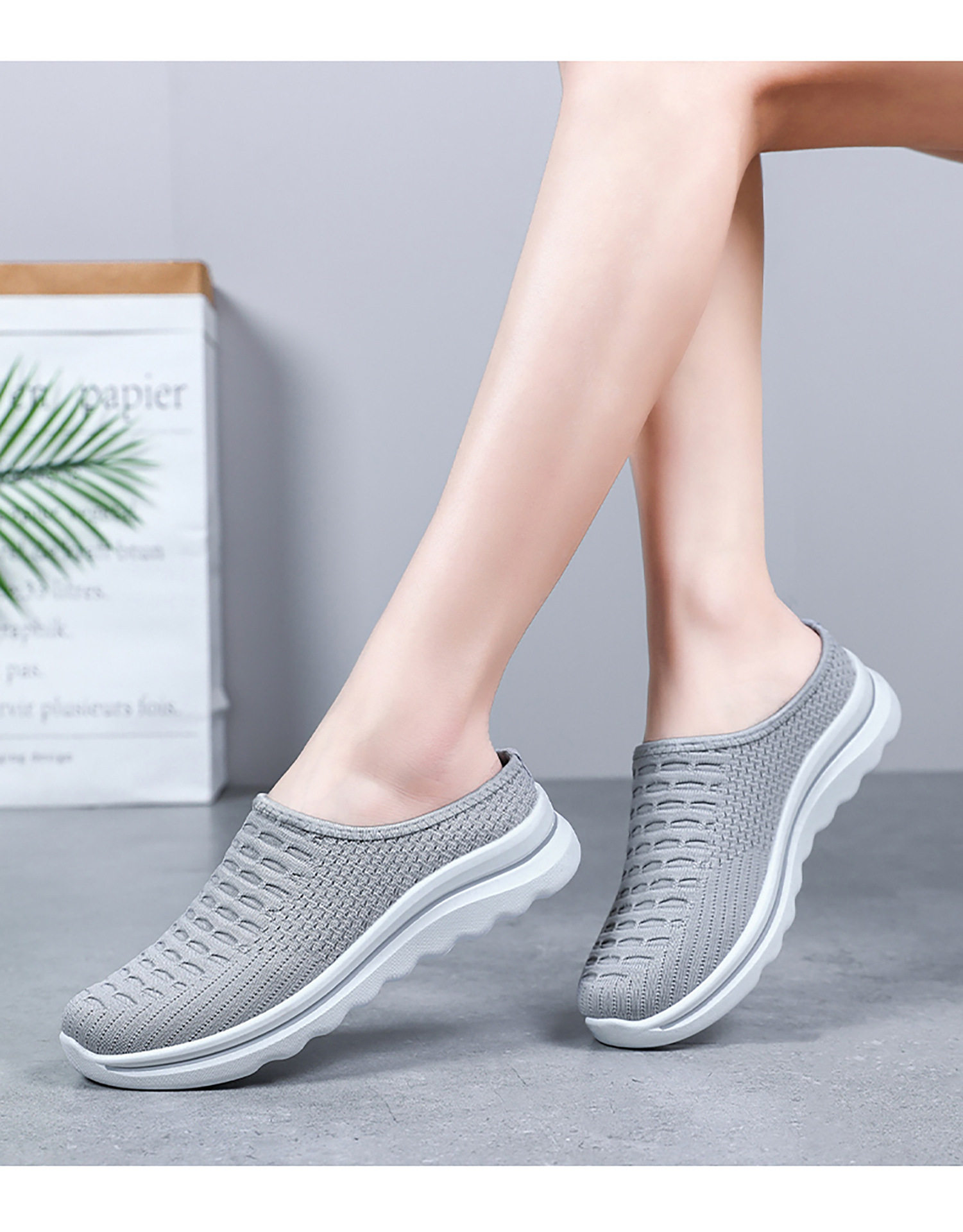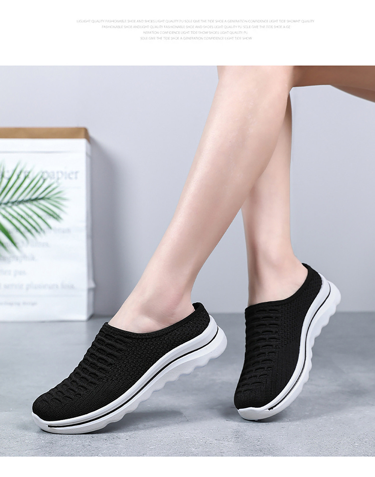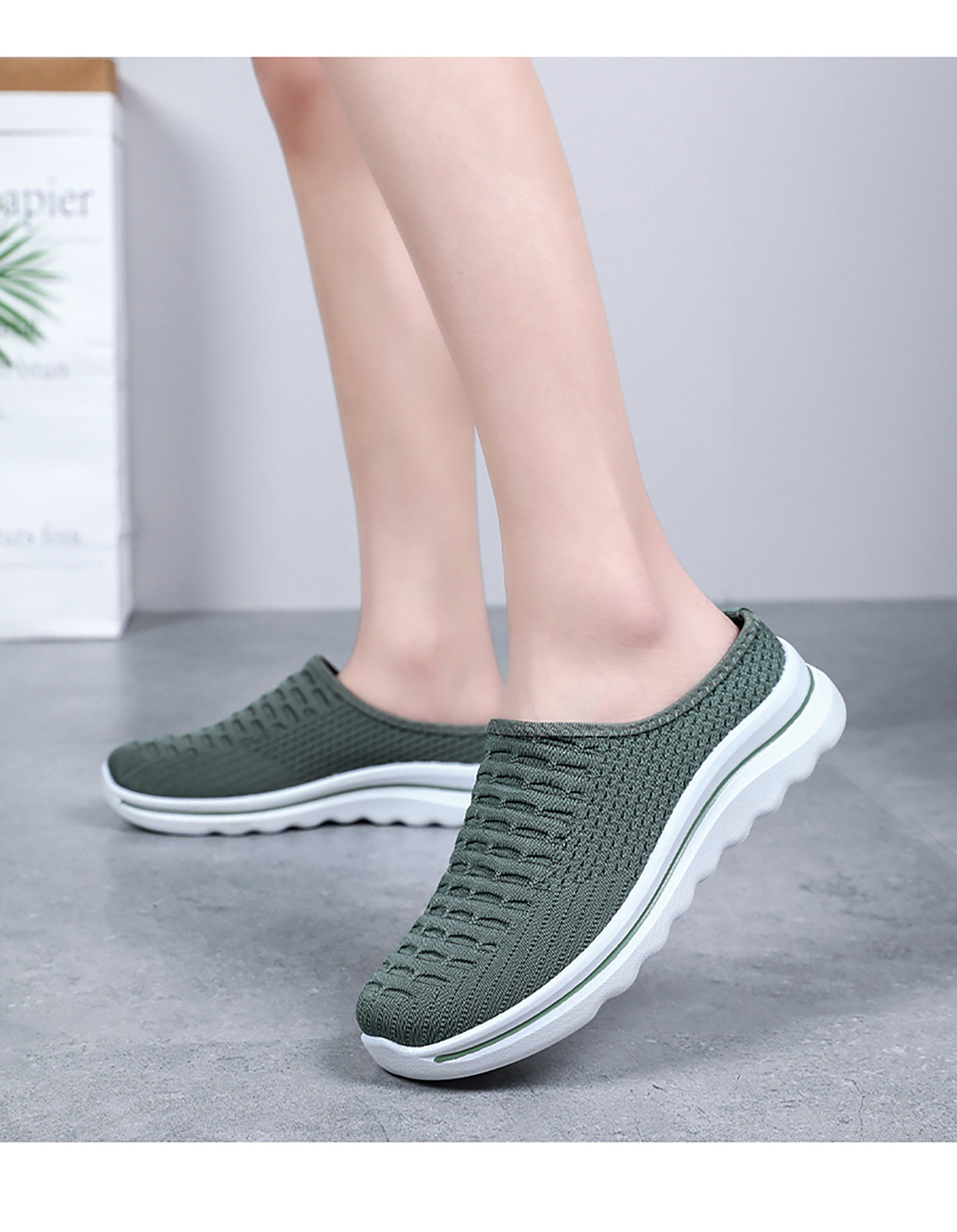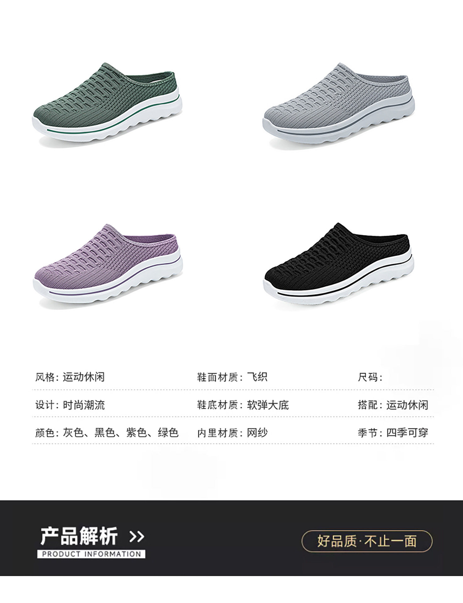 Summer Slippers, Slip-On Toe-Toe Half-Slip Fly-Woven Breathable Outer Slippers, One-Piece Drop-Shipping Solid Color Versatile Mesh Shoes