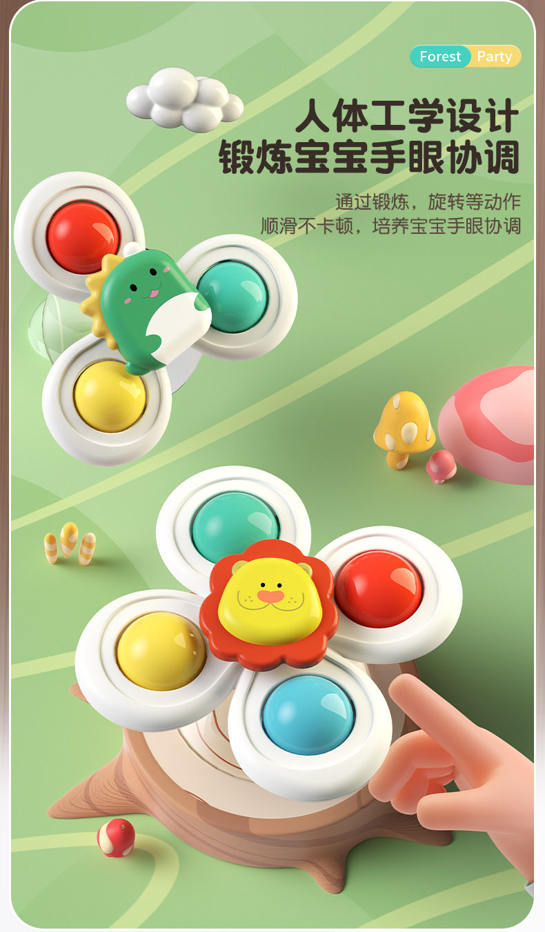 Baby Children's Suction Cup Swivel Music Hand Ring Belt Can Bite and Soothe Baby Push Car Dining Table and Chair Top Toy