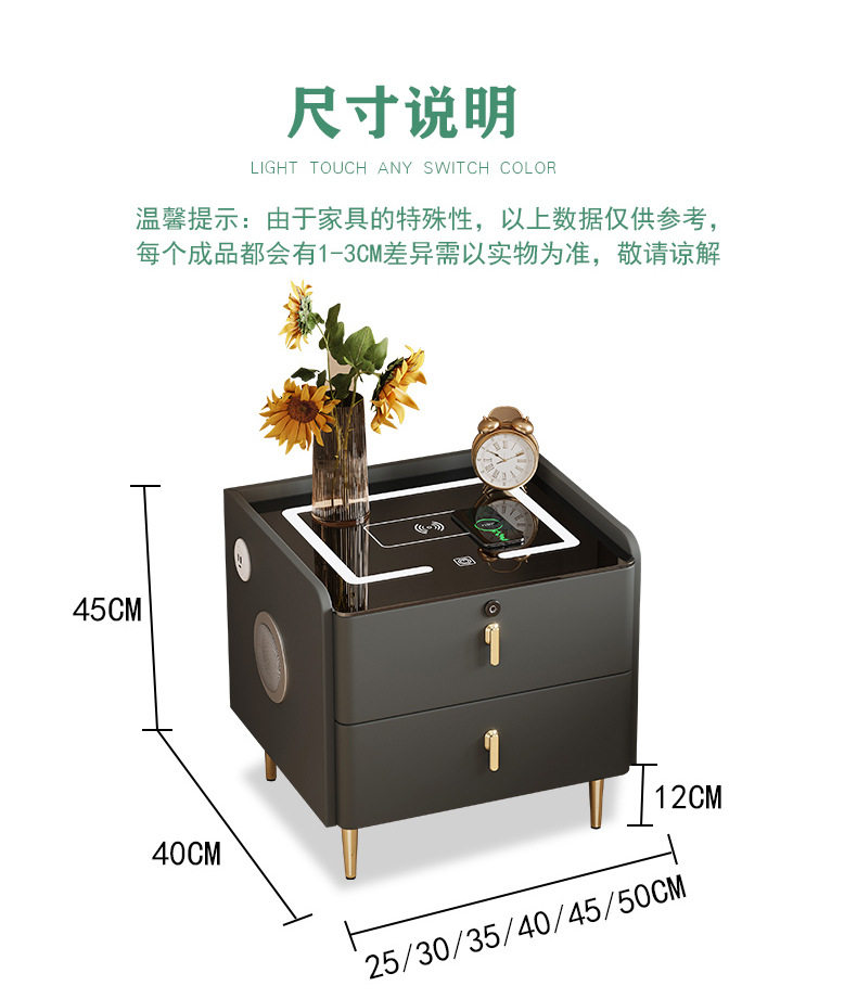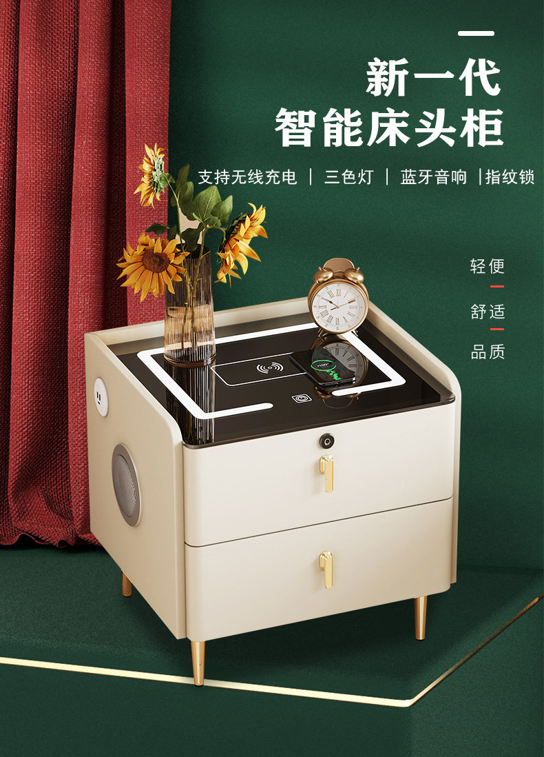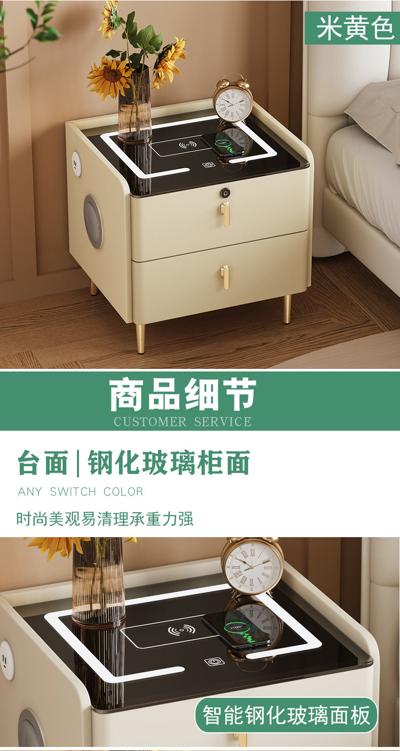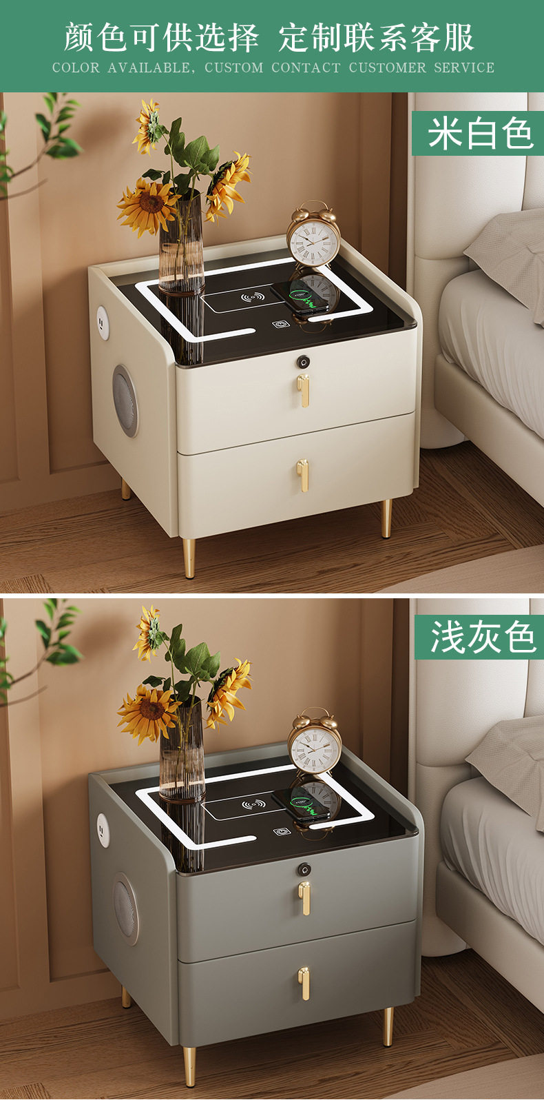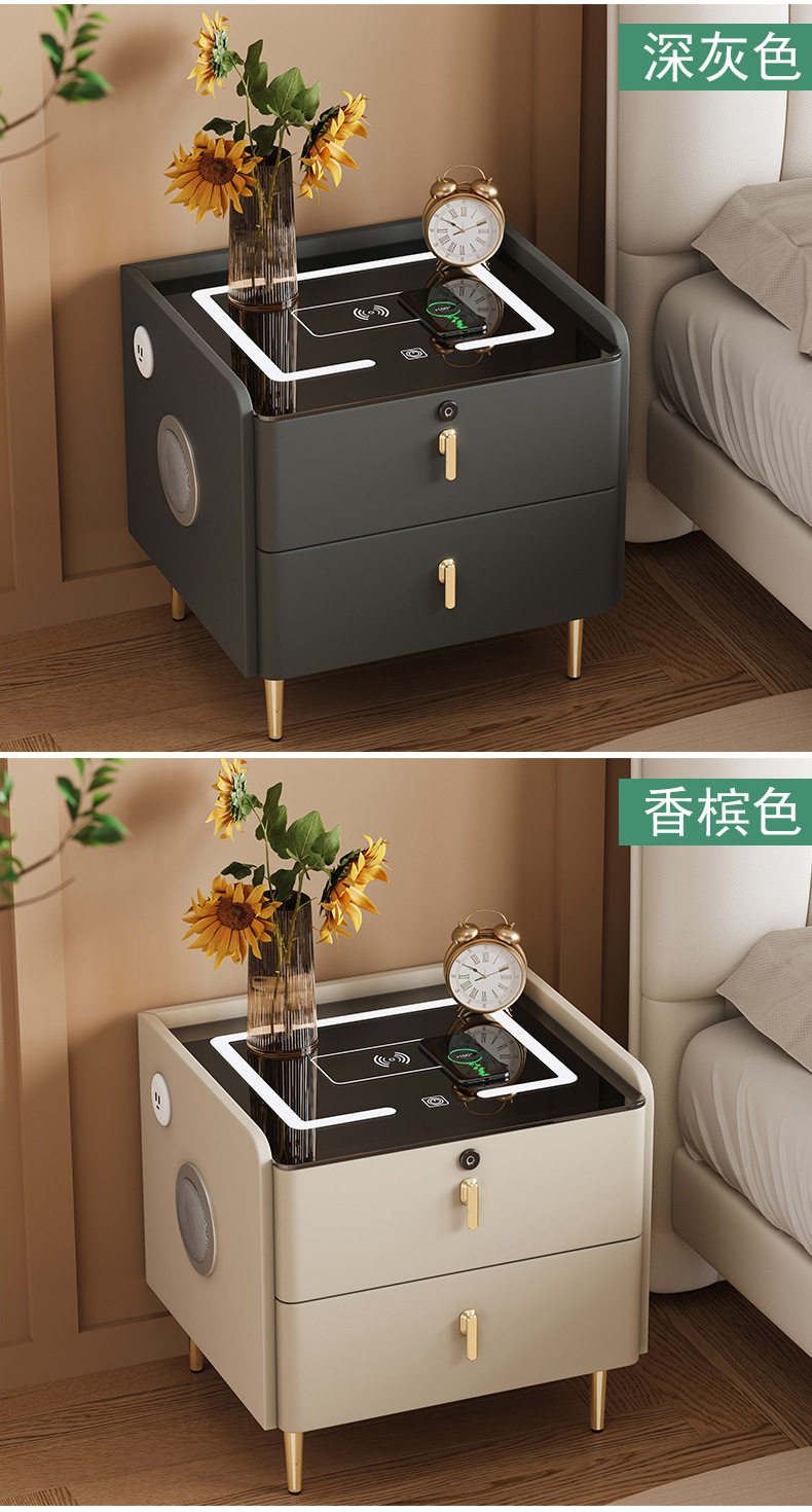 Smart Bedside Table Modern Simple Solid Wood Light Luxury High-end Wireless Charging Multifunctional Bedroom Storage Bedside Cabinet
