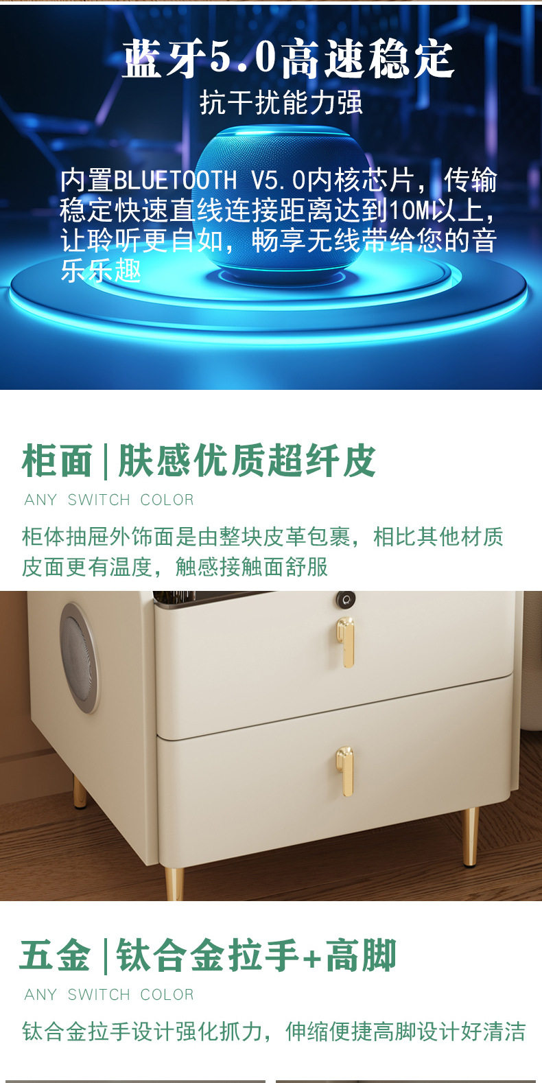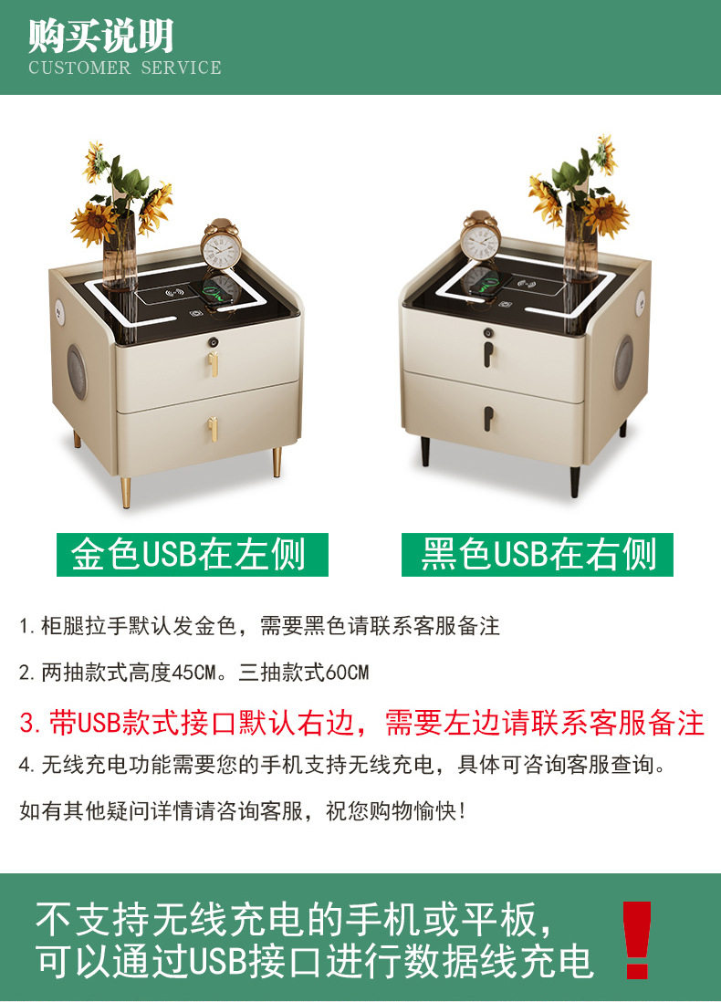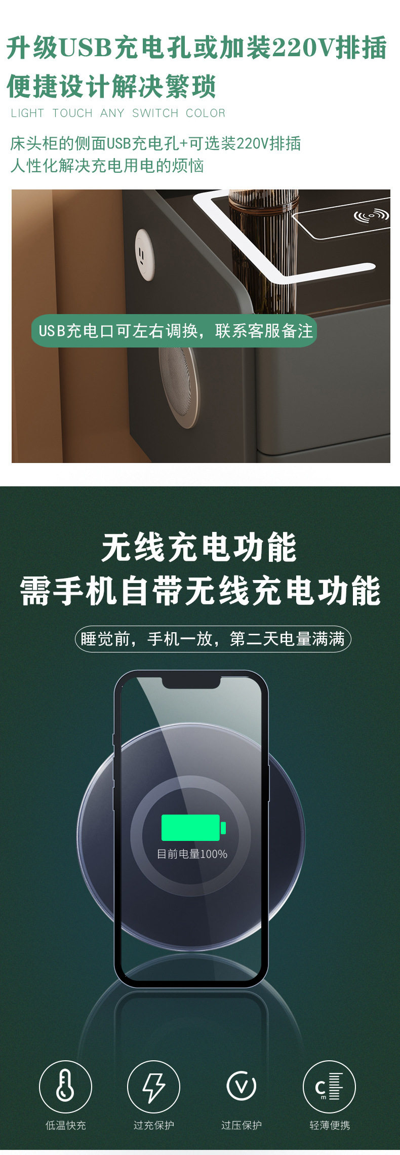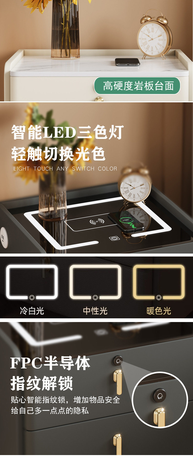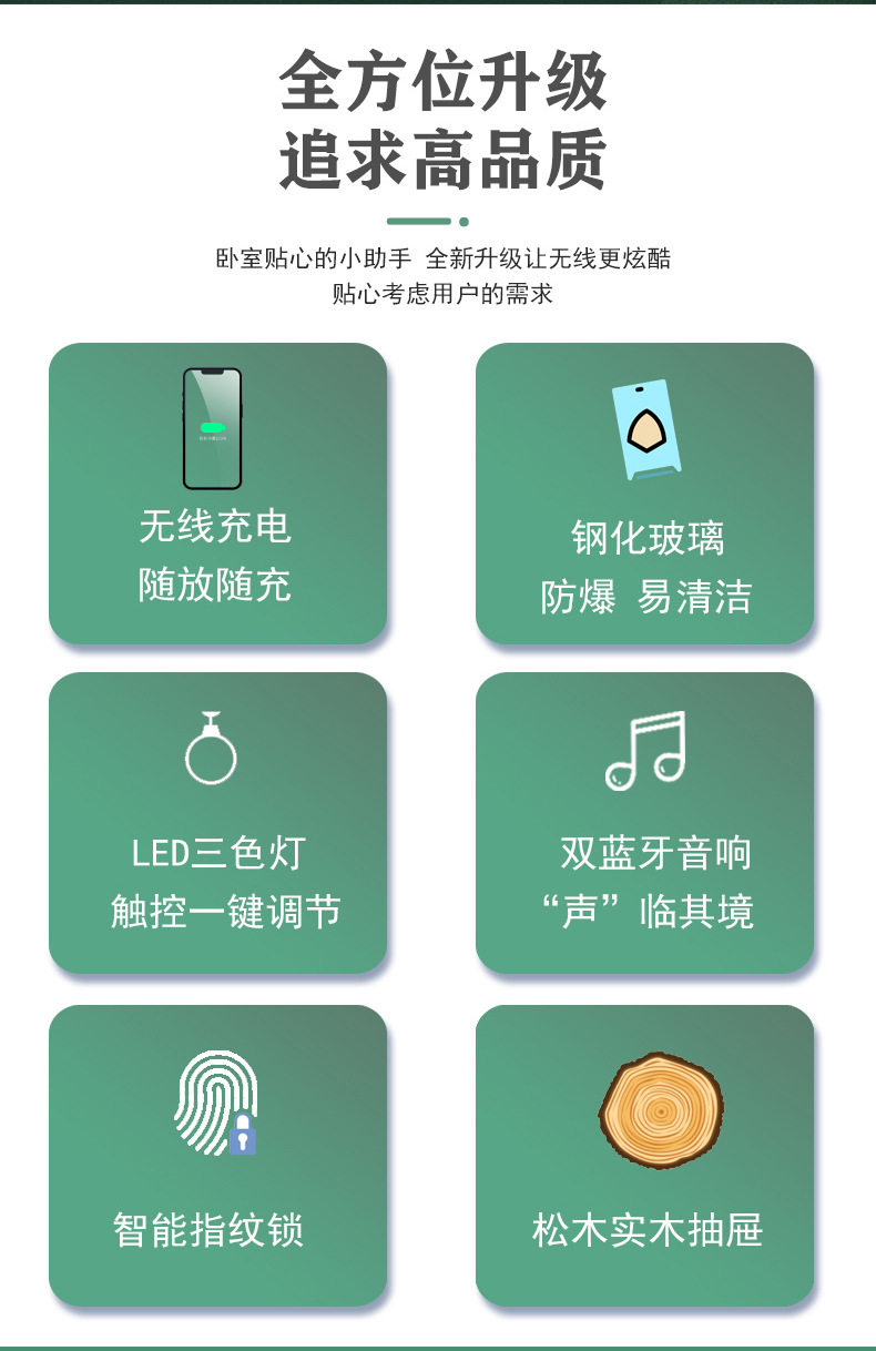 Smart Bedside Table Modern Simple Solid Wood Light Luxury High-end Wireless Charging Multifunctional Bedroom Storage Bedside Cabinet