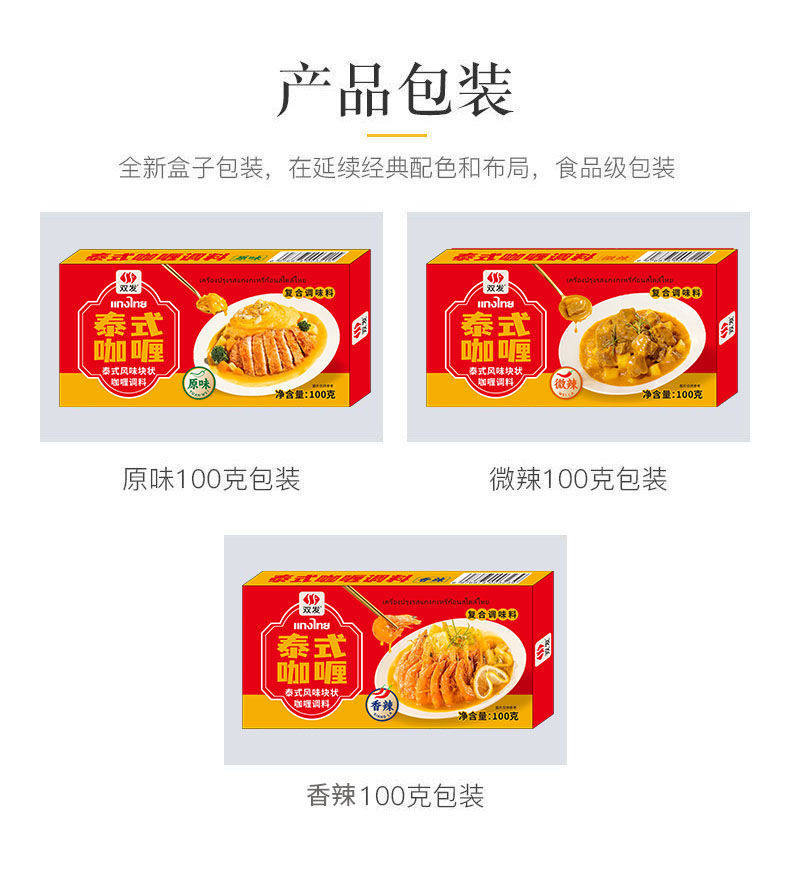 | Packaging specifications | Original [children and the elderly love to eat] thai curry - [1 box] tasting pack,Mildly spicy [delicious and moderately spicy] thai curry - [1 box] tasting pack,Spicy [suitable for spicy people] thai curry - [1 box] tasting pack,Original [children and the elderly love to eat] thai curry - [2 boxes] home pack,Mildly spicy [delicious and moderately spicy] thai curry - [2 boxes] household size,Spicy [suitable for spicy people] thai curry-[2 boxes] household pack,Original [children and the elderly love to eat] thai curry - [3 boxes] cost-effective package,Mildly spicy [delicious and moderately spicy] thai curry - [3 boxes] cost-effective package,Spicy [suitable for spicy people] thai curry - [3 boxes] cost-effective package,Original [children and the elderly love to eat] thai curry - [4 boxes] cost-effective package,Mildly spicy [delicious and moderately spicy] thai curry - [4 boxes] cost-effective package,Spicy [suitable for spicy people] thai curry - [4 boxes] cost-effective package,Original [children and the elderly love to eat] thai curry - [5 boxes] stocking pack,Mildly spicy [delicious and moderately spicy] thai curry - [5 boxes] stocking pack,Spicy [suitable for spicy people] thai curry - [5 boxes] stocking pack,Original [children and the elderly love to eat] thai curry - [6 boxes] value pack,Mildly spicy [delicious and moderately spicy] thai curry - [6 boxes] value pack,Spicy [suitable for spicy people] thai curry - [6 boxes] value pack |