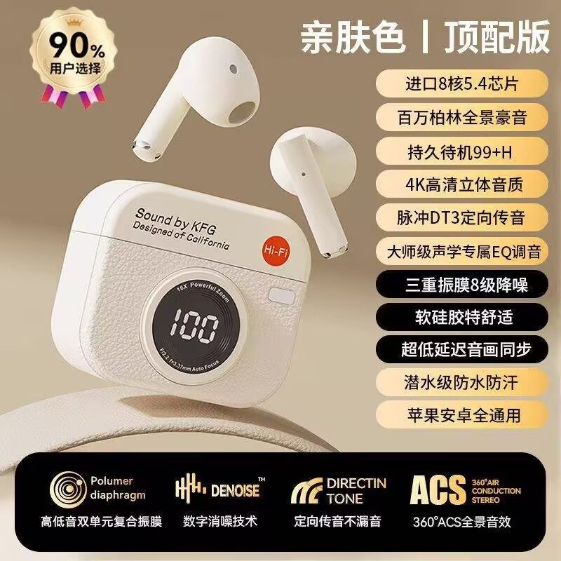 Cross-Border 2025 New Smart Digital Display Berlin Sound High-Quality Retro Camera In-Ear Bluetooth Headset Q86