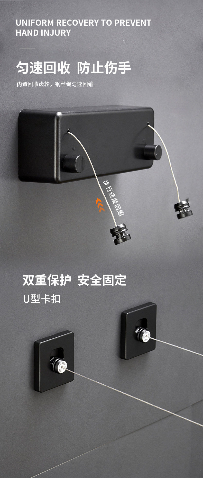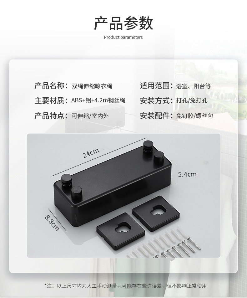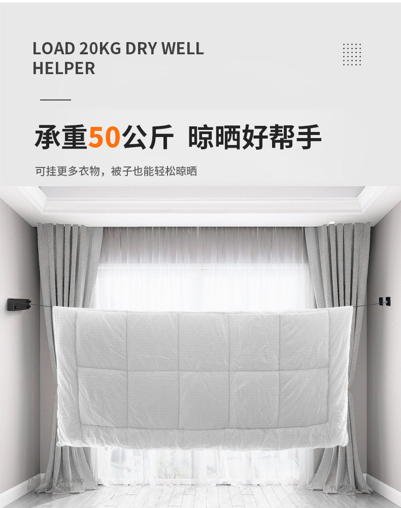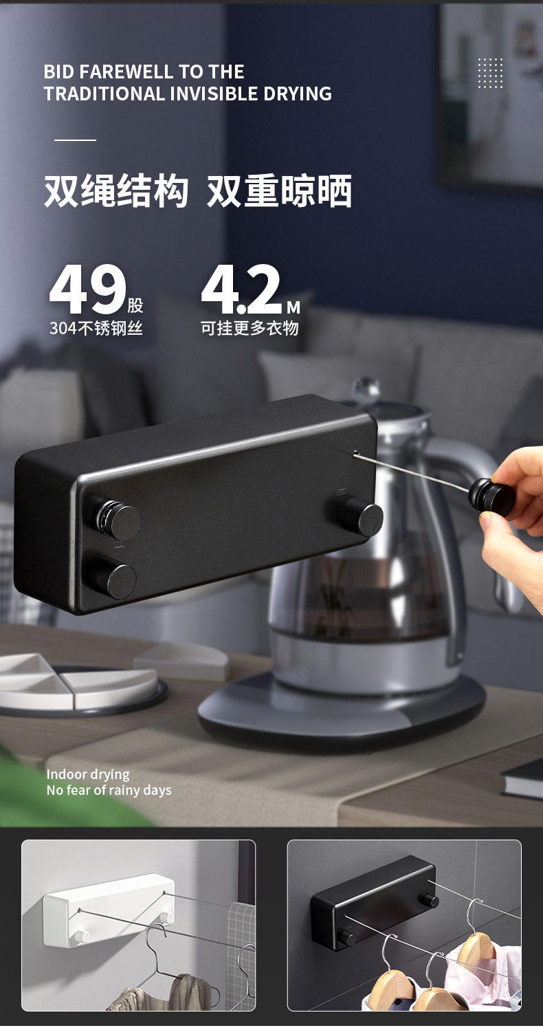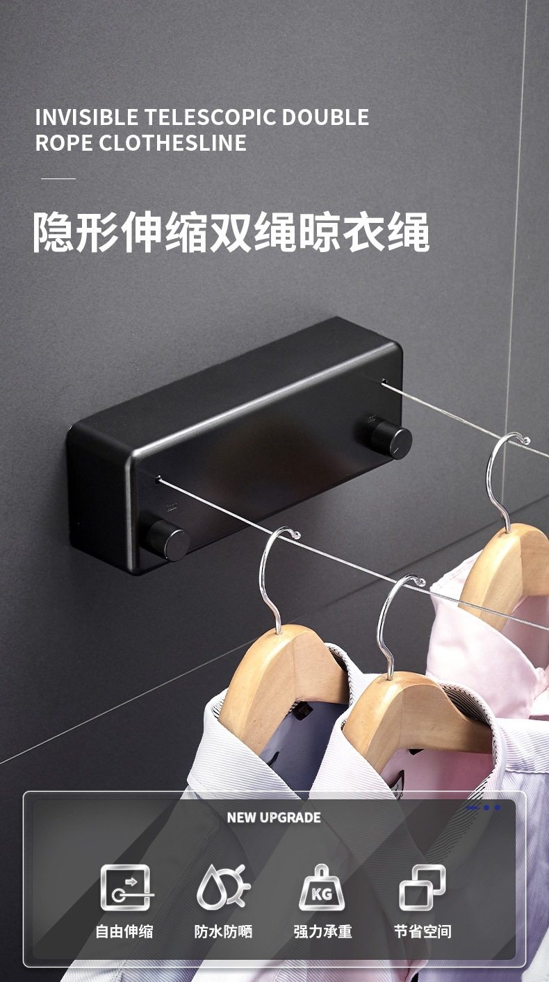 Double retractable clothesline indoor non-perforated balcony invisible shrink clothes-drying artifact toilet clothes-drying rack wire rope