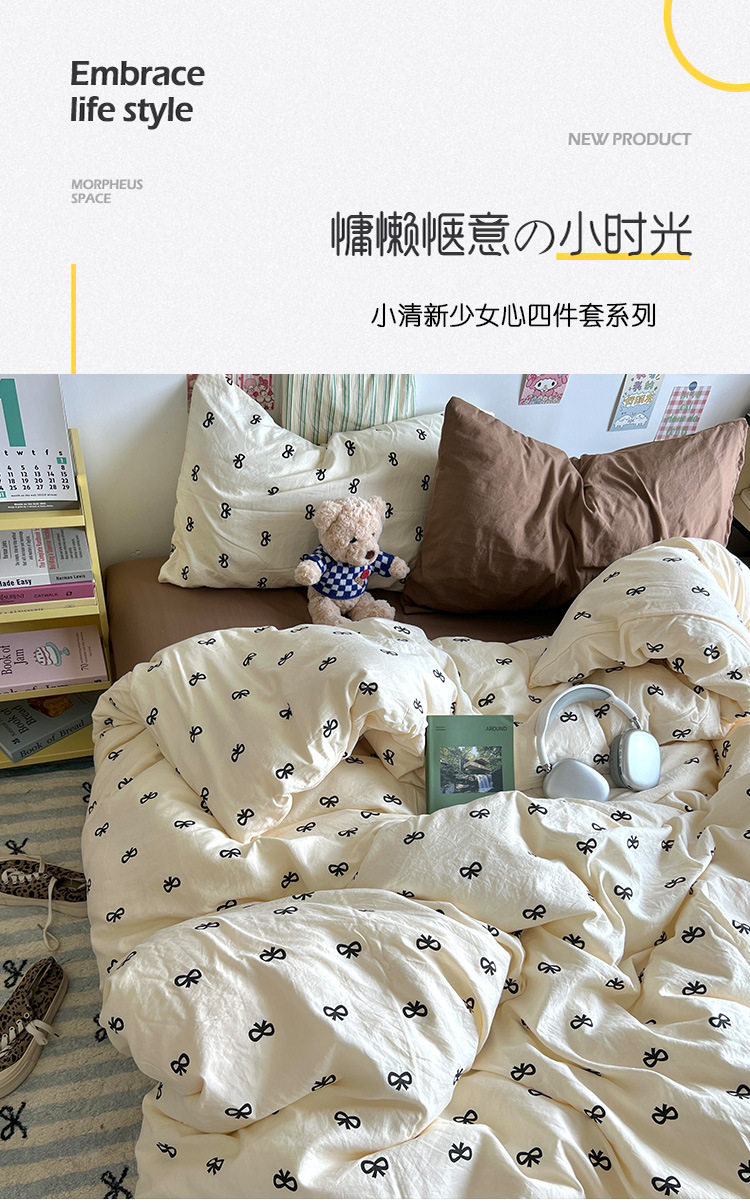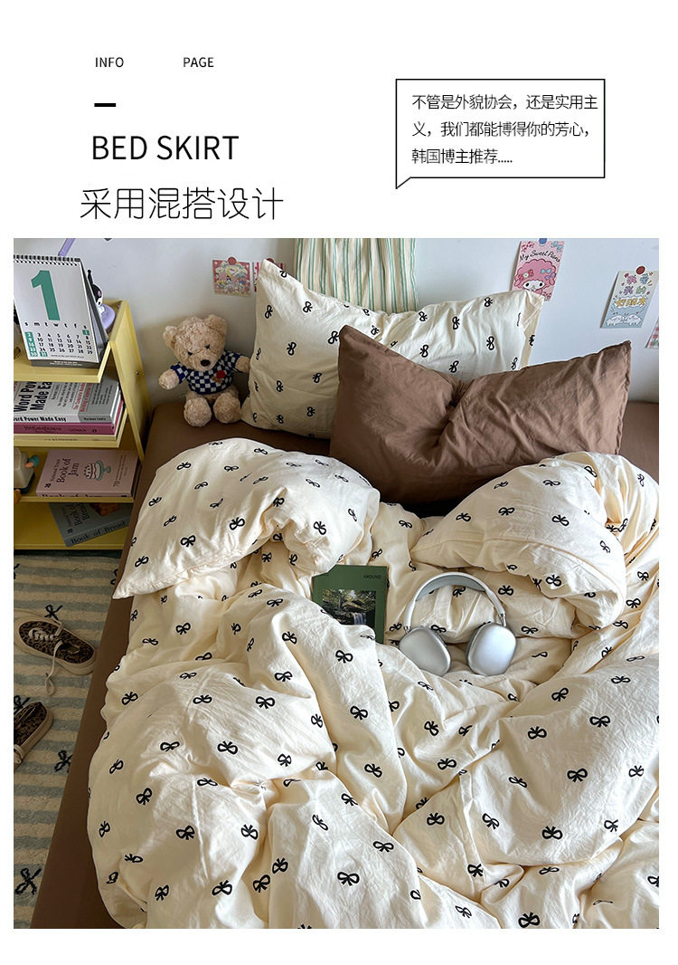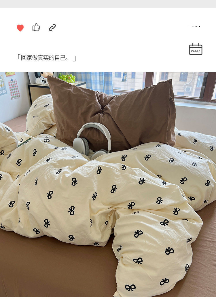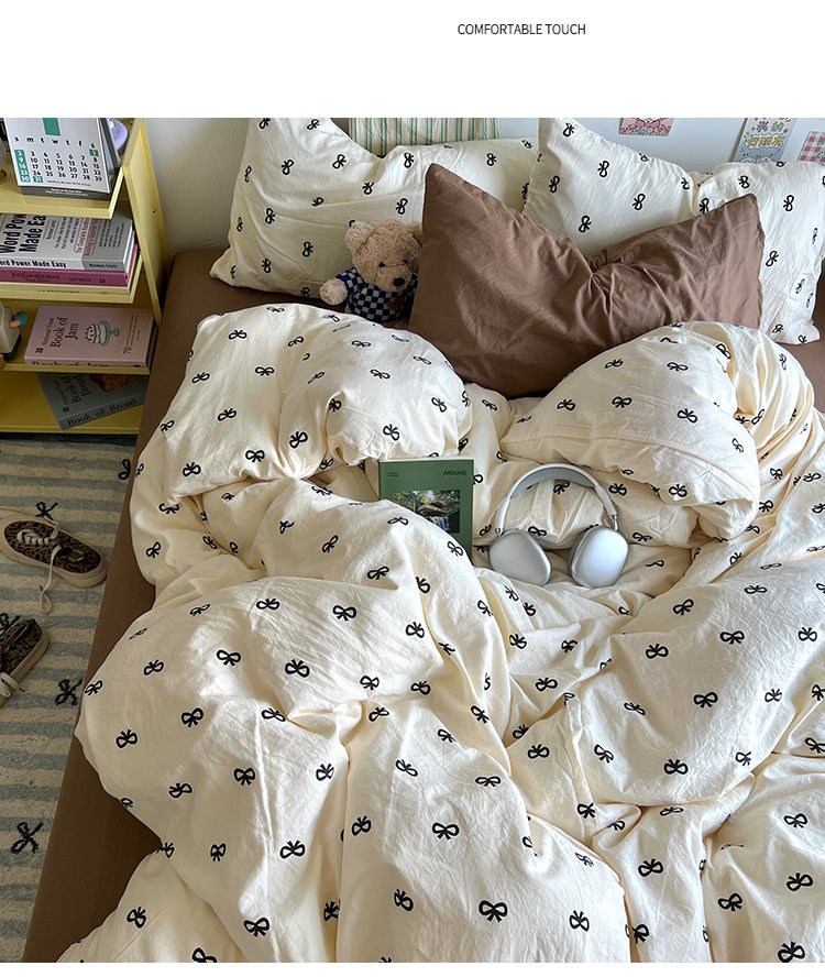 Class A Cute Super Soft Washable Cotton Four-piece Set Ins Style Skin-friendly Mix and Match Student Bed Sheet Three-piece Set Sleeping Naked Quilt Cover