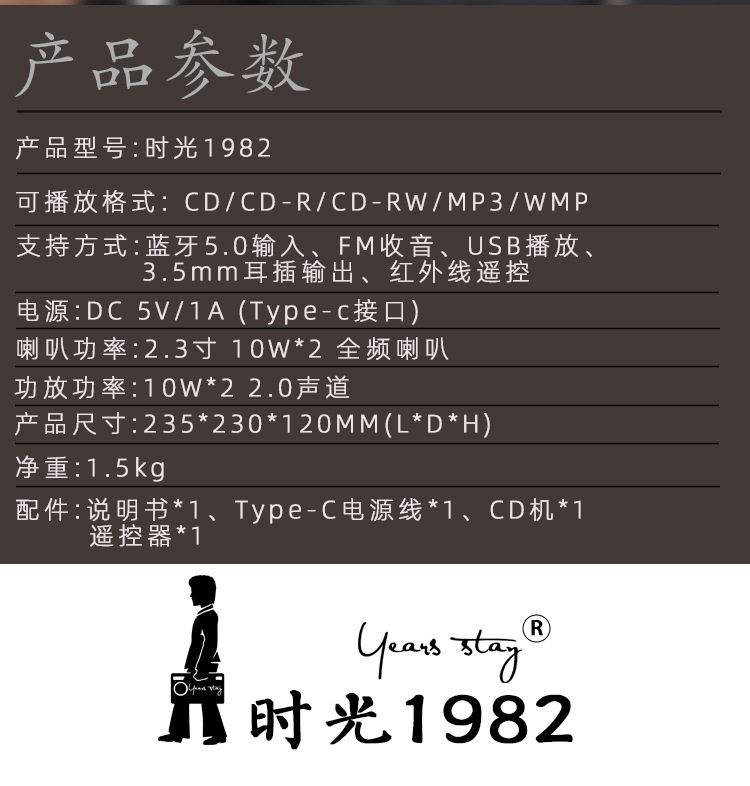 | Package list | Cd player, charging cable, manual, remote control |