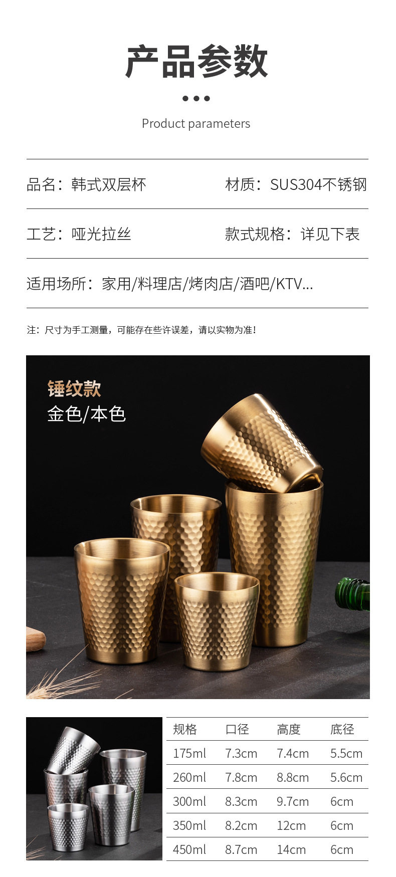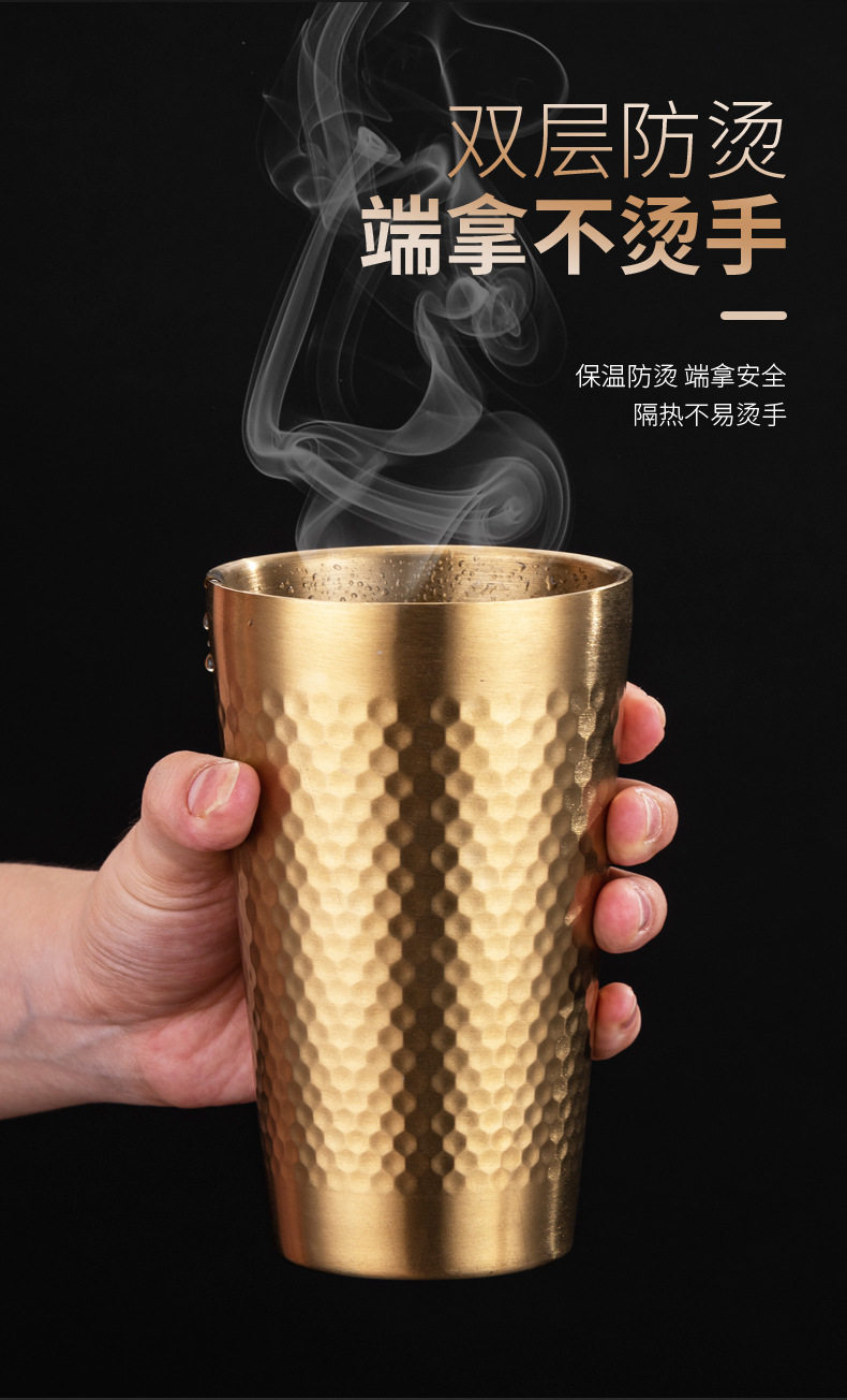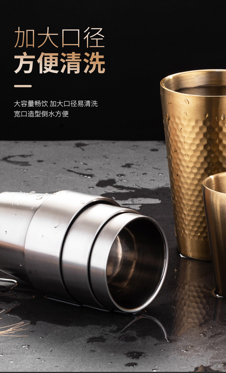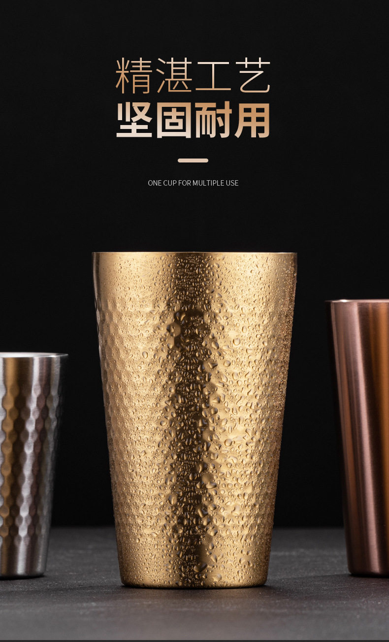 New 304 Stainless Steel Beer Mug Practical, Convenient and Easy to Clean Double Layer Anti-scalding Hammer Pattern Water Cup for Outdoor Camping