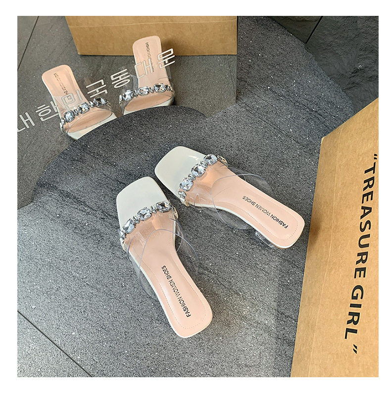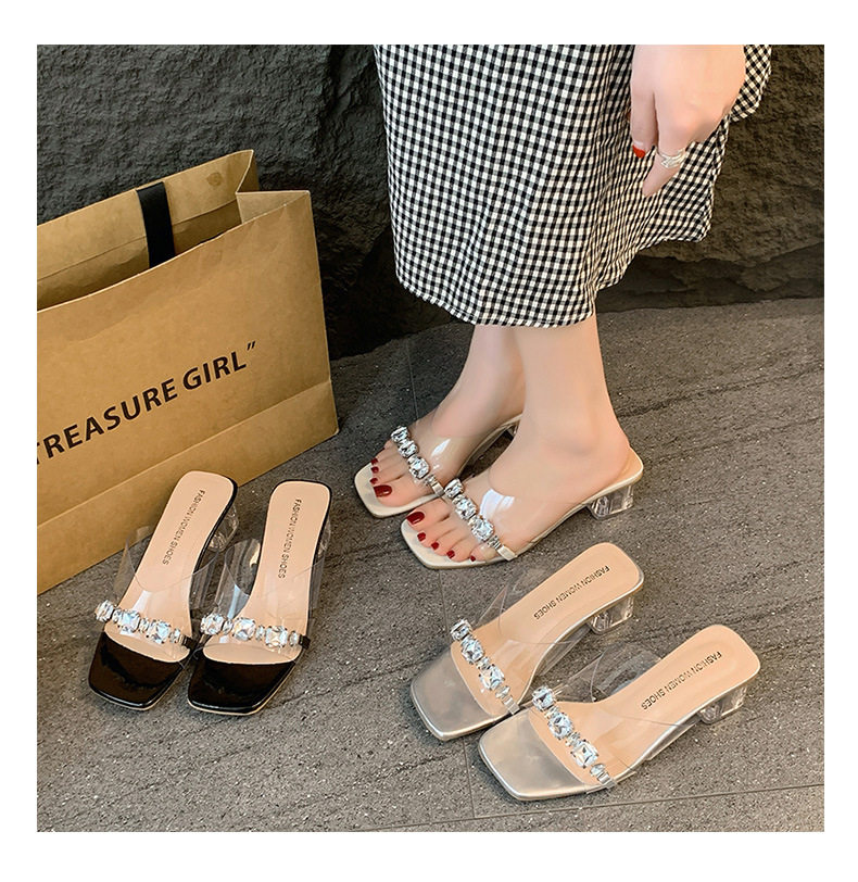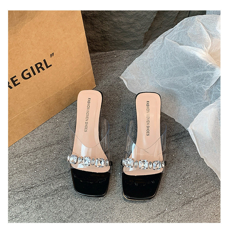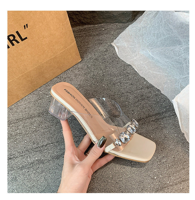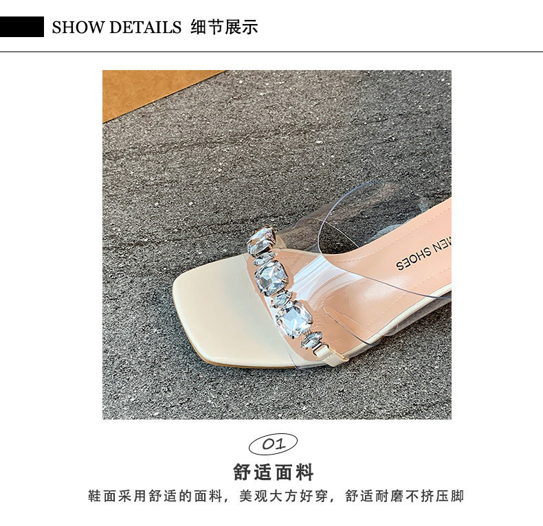 Fairy Style Rhinestone Slippers Women's Outwear Fashionable Summer High-end Transparent One-line Crystal Thick Heel High Heel Sandals