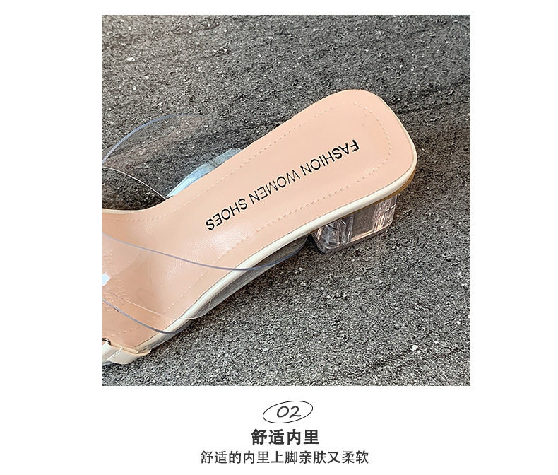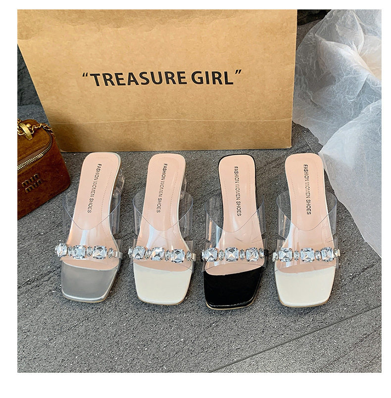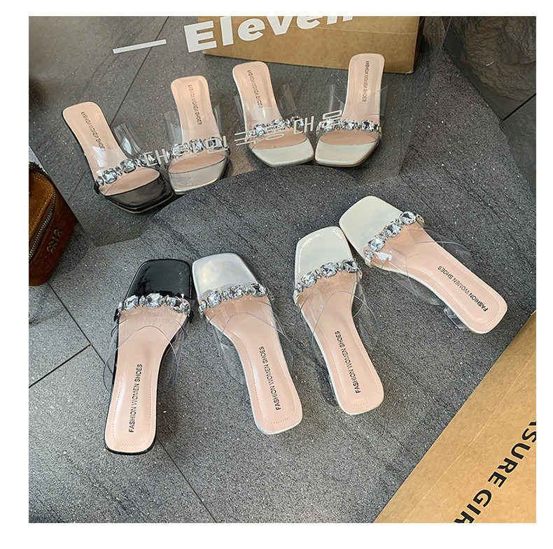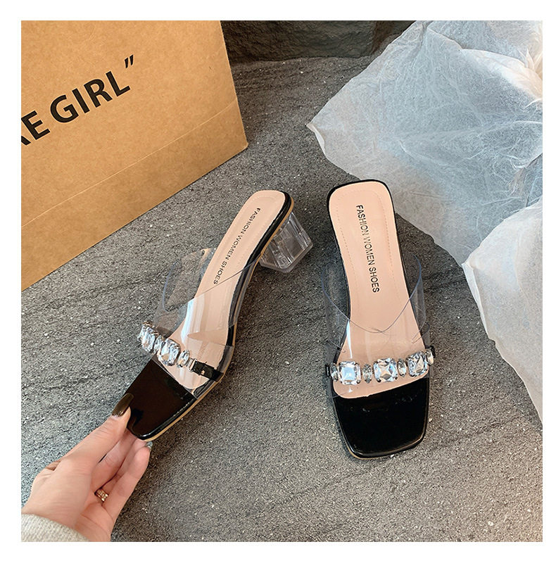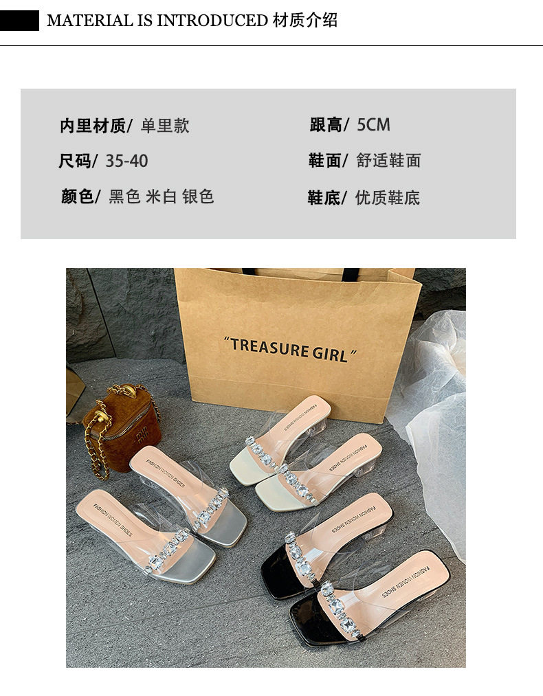 Fairy Style Rhinestone Slippers Women's Outwear Fashionable Summer High-end Transparent One-line Crystal Thick Heel High Heel Sandals