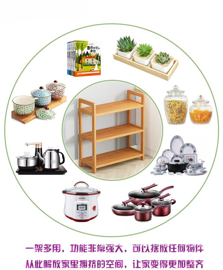 Factory Direct Sales of Simple Kitchen Supplies, Small Bookshelf, Multi-Layer Pot Rack, Kitchen Storage Rack, Bamboo Solid Wood Storage