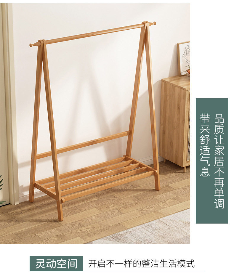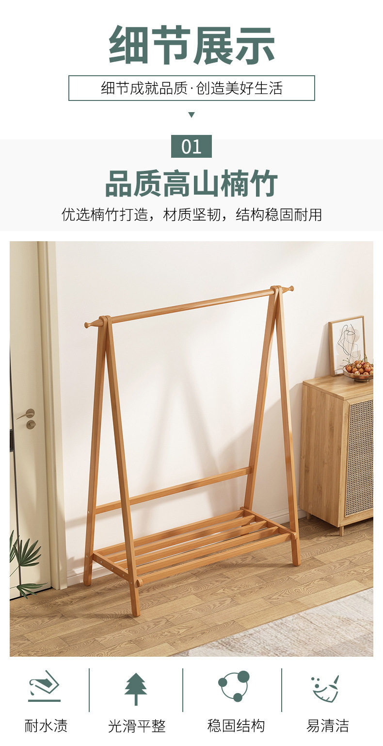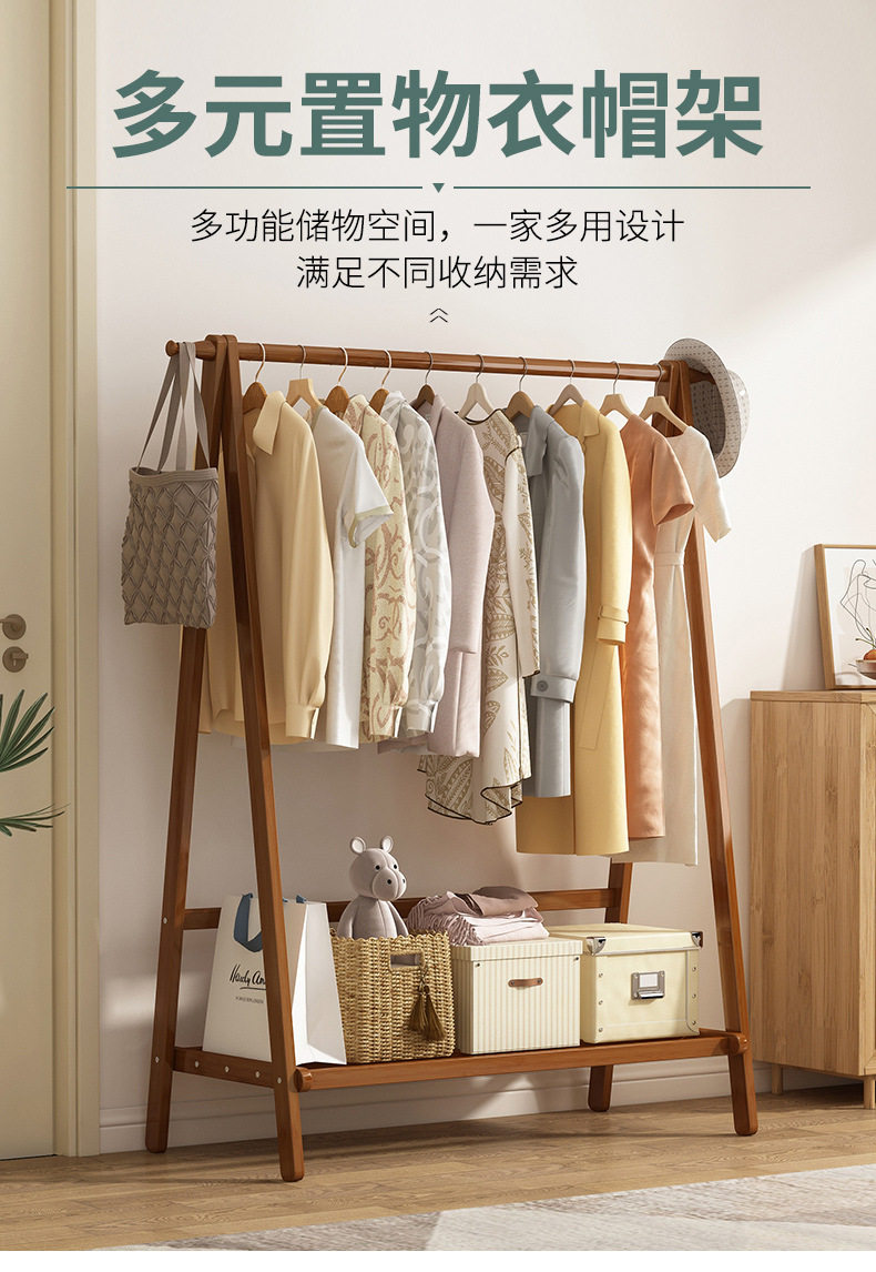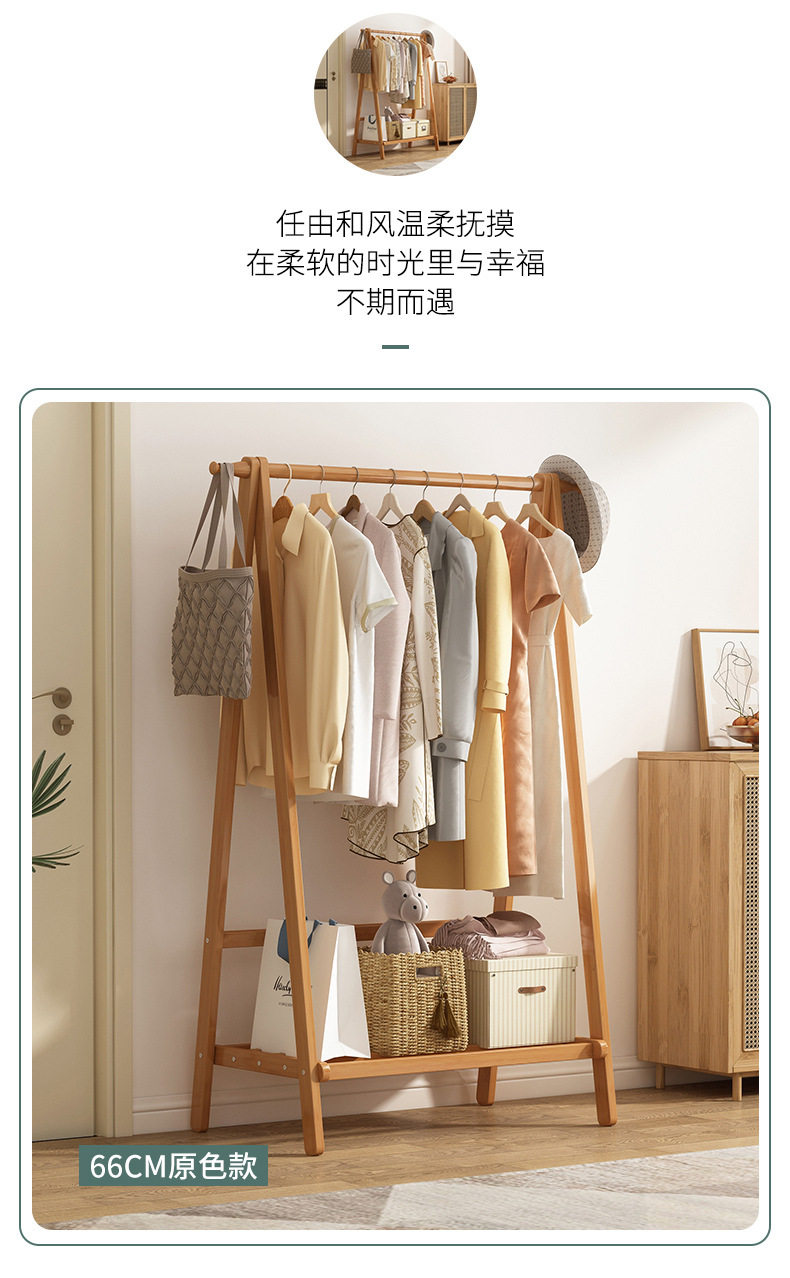 Clothes Rack Floor Stand for Home Bedroom, Double-Layer Storage Indoor Clothes Rack, Coat Rack, Clothes Drying Rack, Bamboo Material
