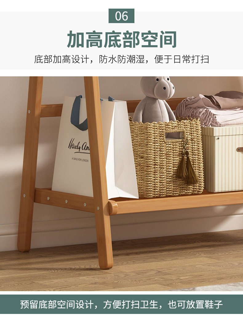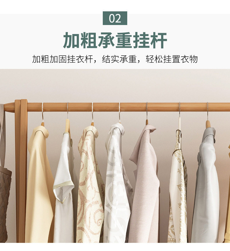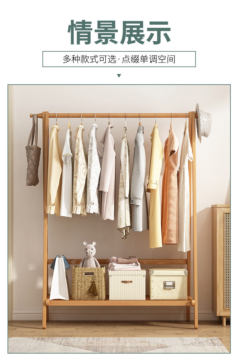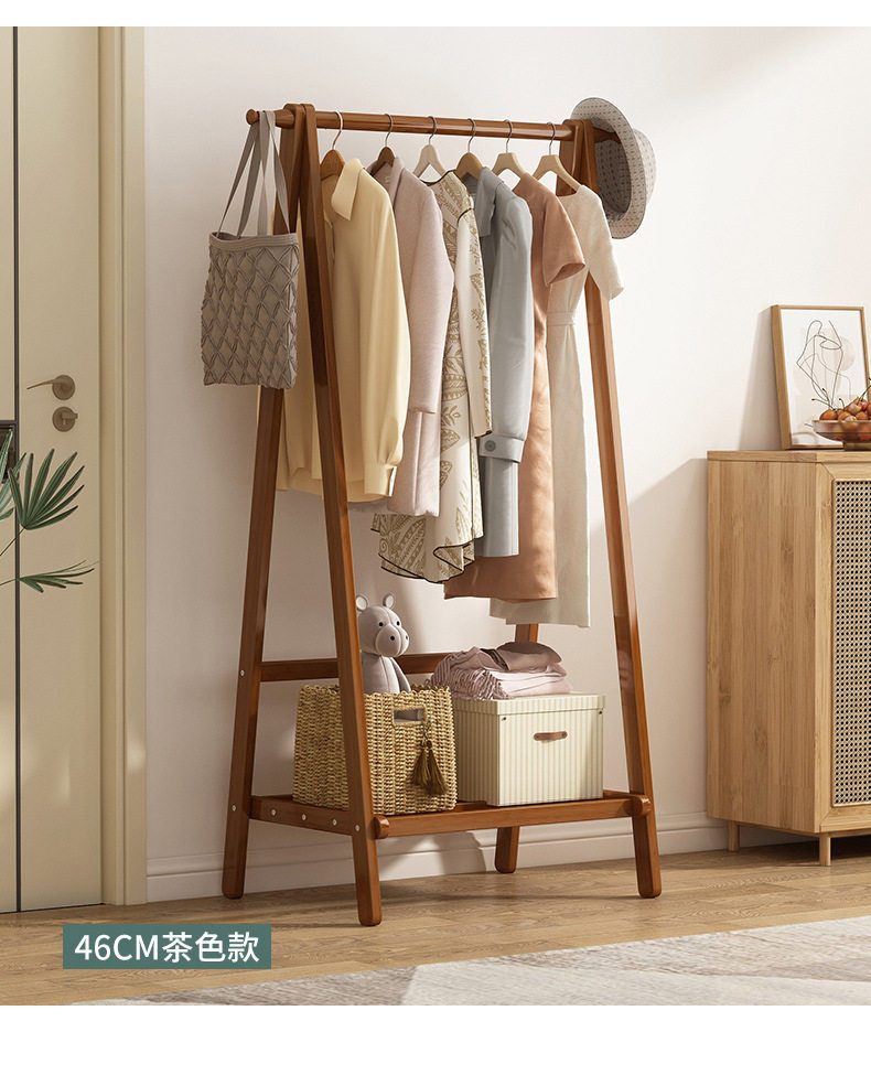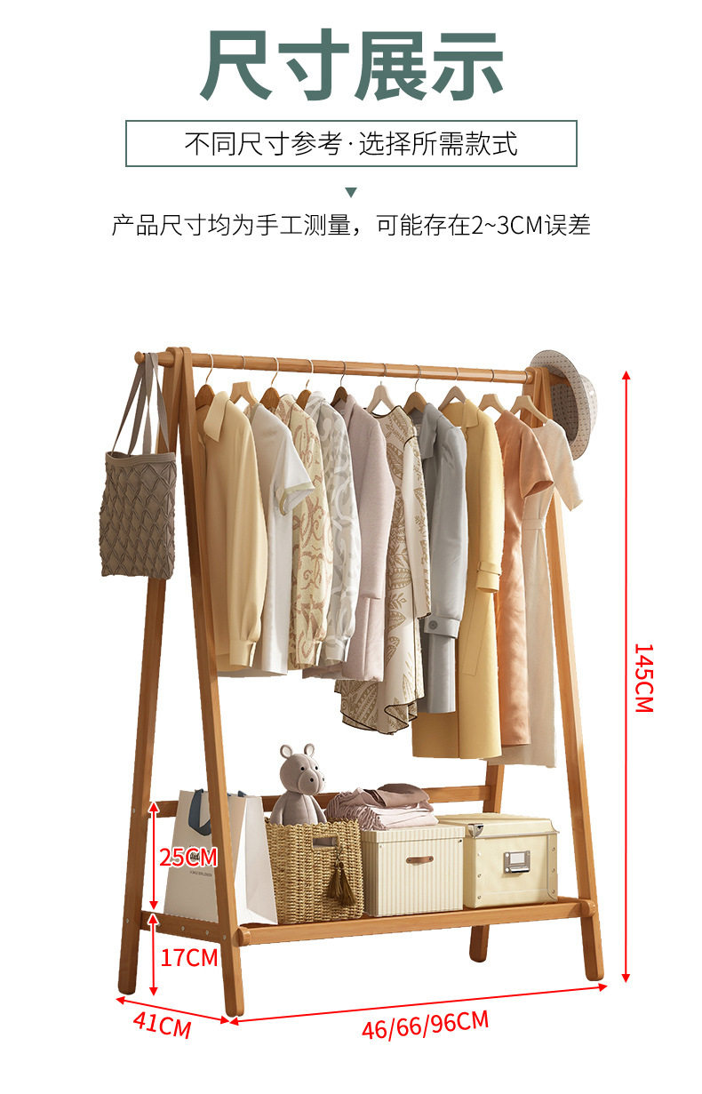 Clothes Rack Floor Stand for Home Bedroom, Double-Layer Storage Indoor Clothes Rack, Coat Rack, Clothes Drying Rack, Bamboo Material