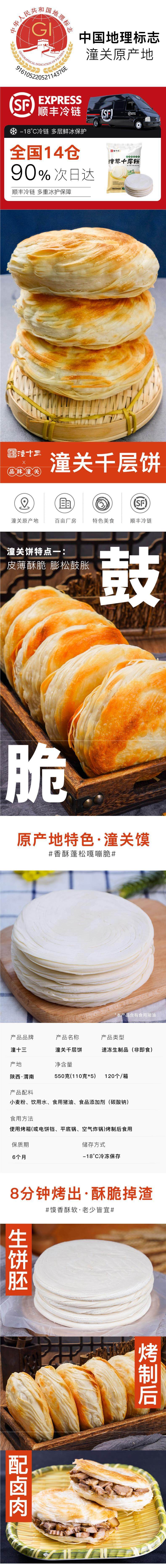 Laotongguan Thousand Layer Pancake Meat Bun Embryo Frozen Instant Breakfast Semi-Finished Crispy Pancake Home Commercial Shaanxi Made