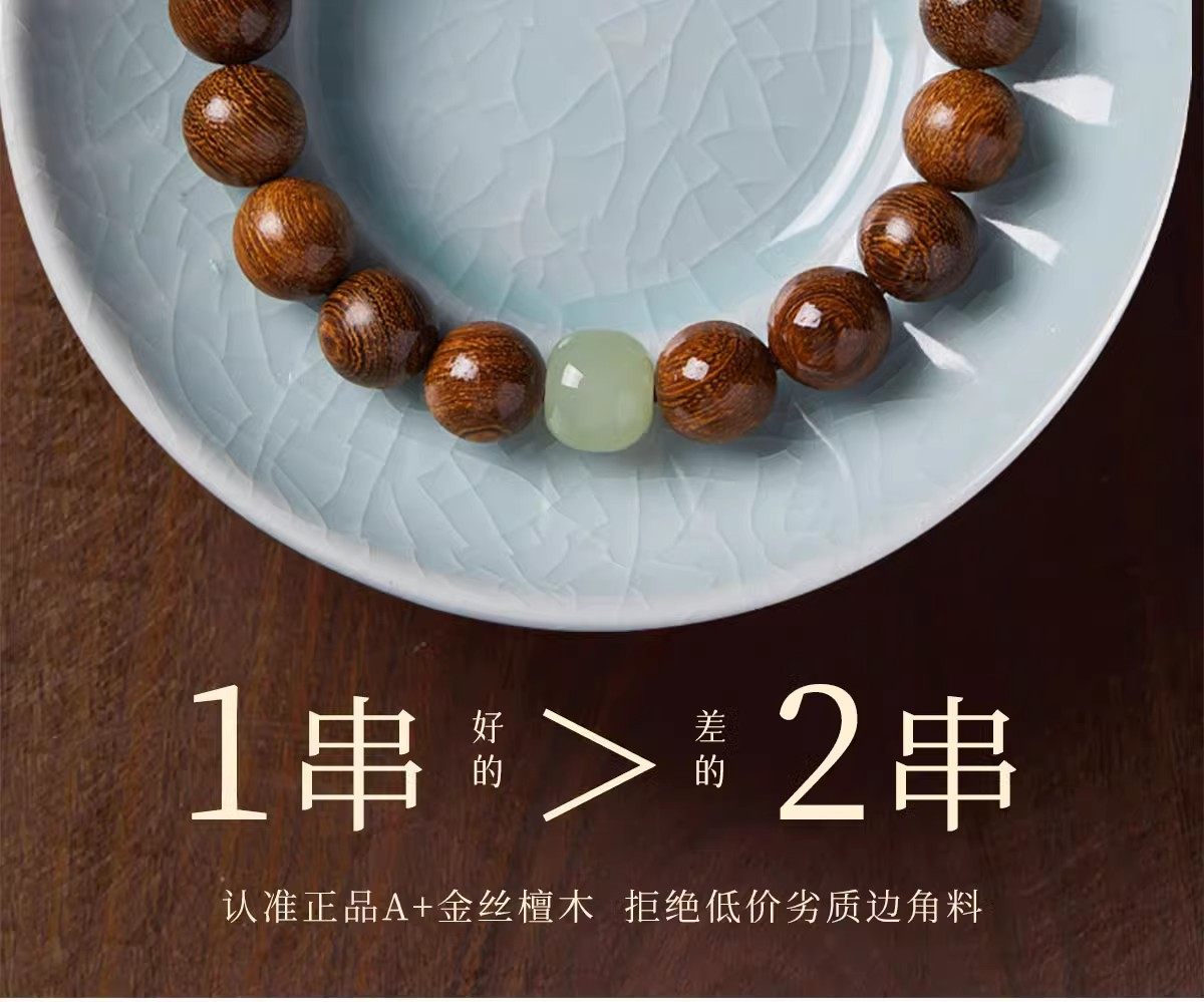 Niche Bracelet Natural Gold Silk Sandalwood Beaded Bracelet Handheld Rosary Beads Buddha Beads Couple Retro National Fashion Wholesale