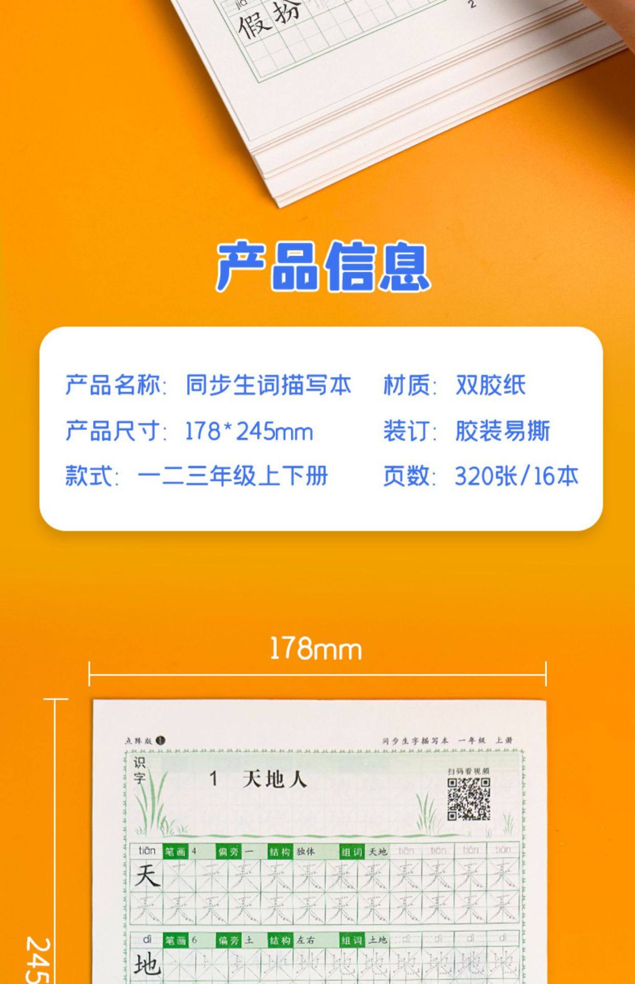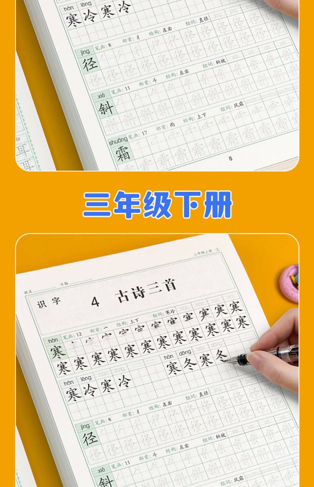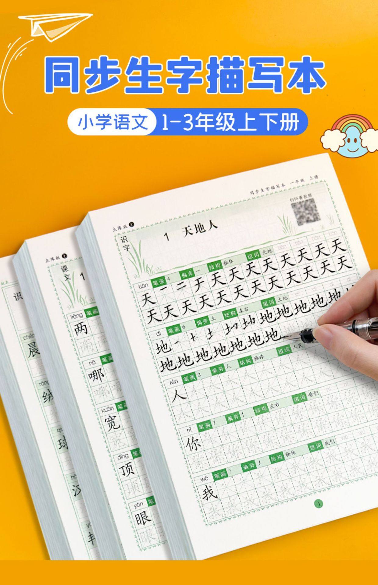 Chinese Character Practice Book for Grades 1, 2, and 3, First and Second Semester, Chinese Language Synchronized Copybook, Chinese Character Tracing Book, Daily Practice