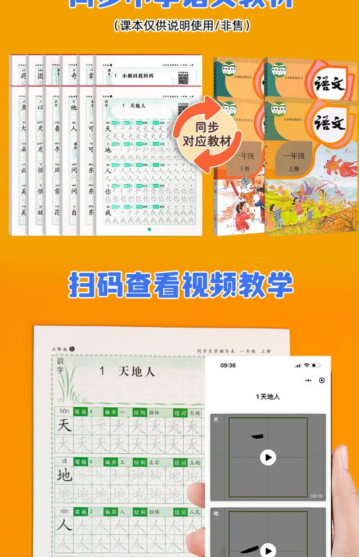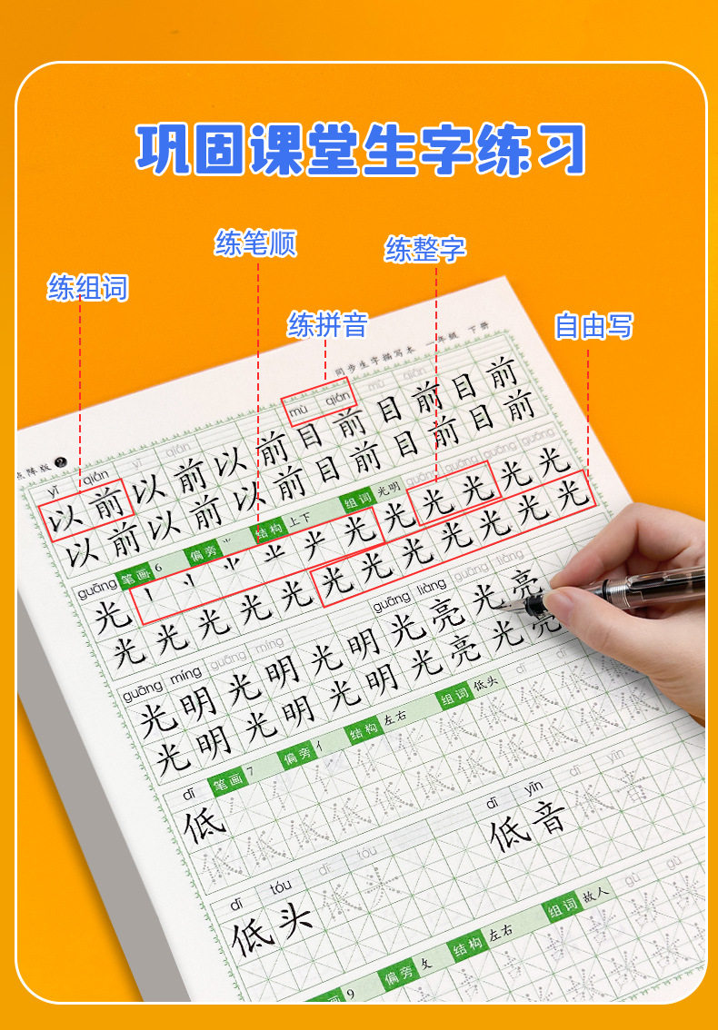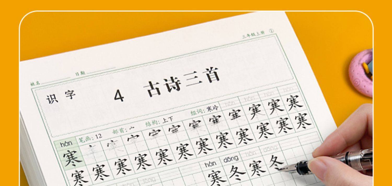 Chinese Character Practice Book for Grades 1, 2, and 3, First and Second Semester, Chinese Language Synchronized Copybook, Chinese Character Tracing Book, Daily Practice