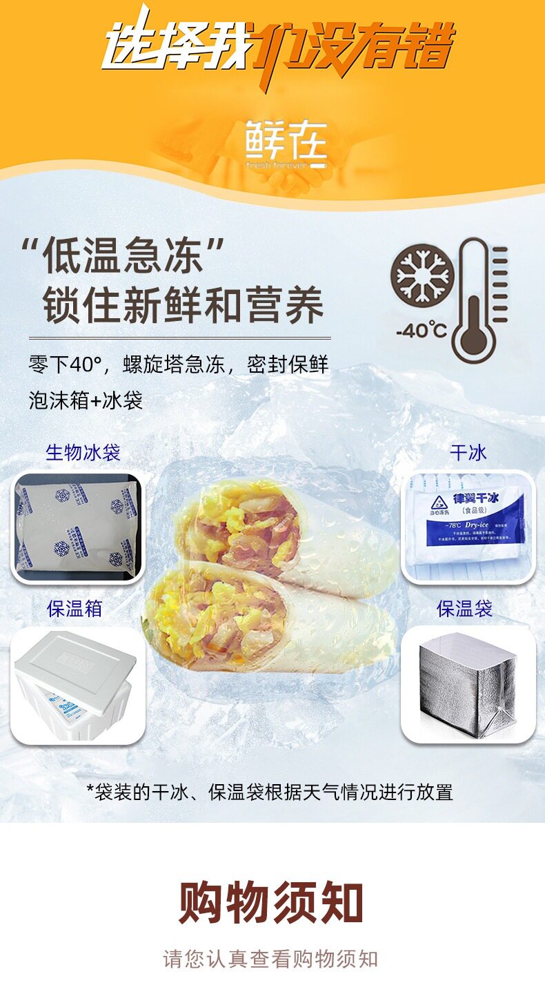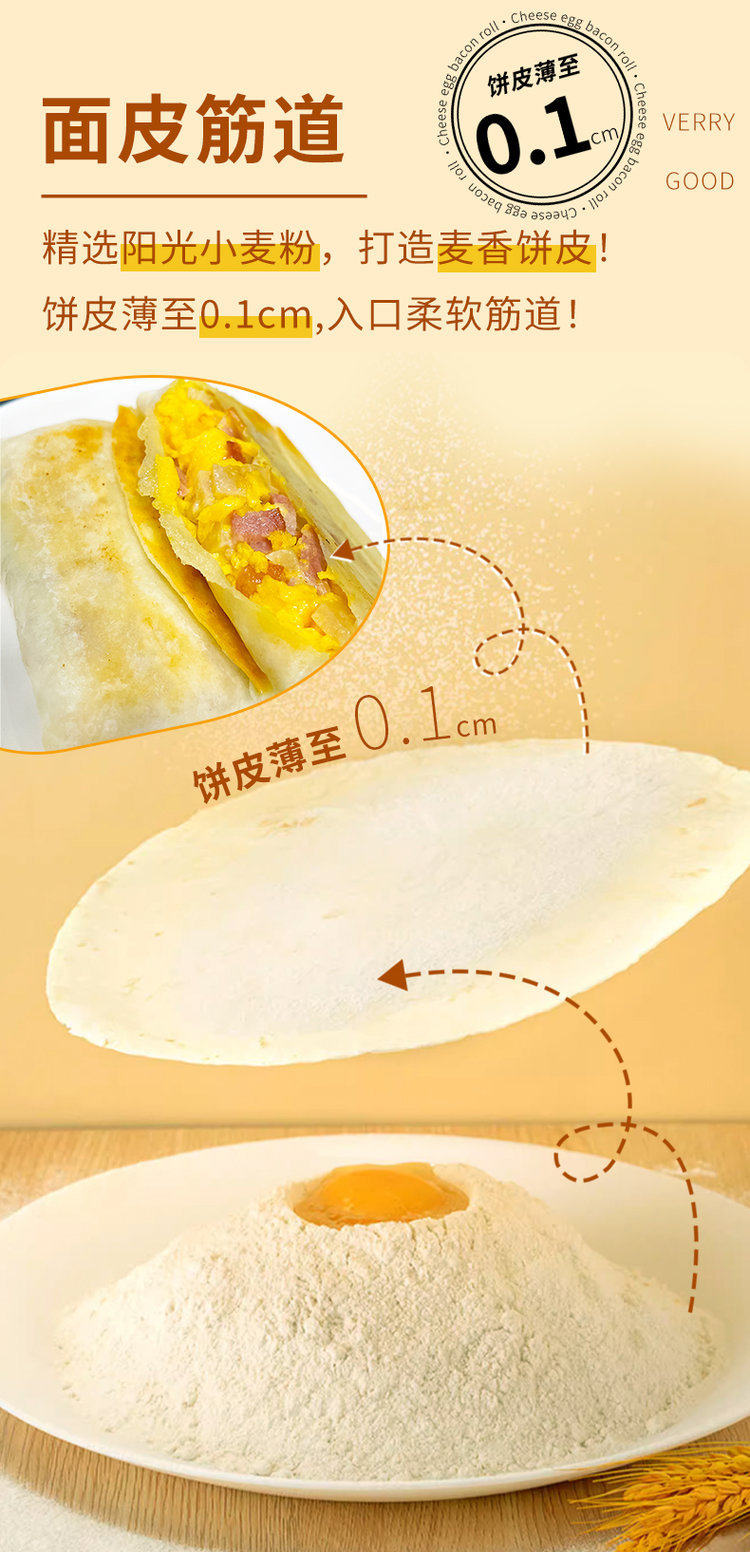 | Packaging specifications | Fresh cheese egg bacon rolls 130g*10 pieces |